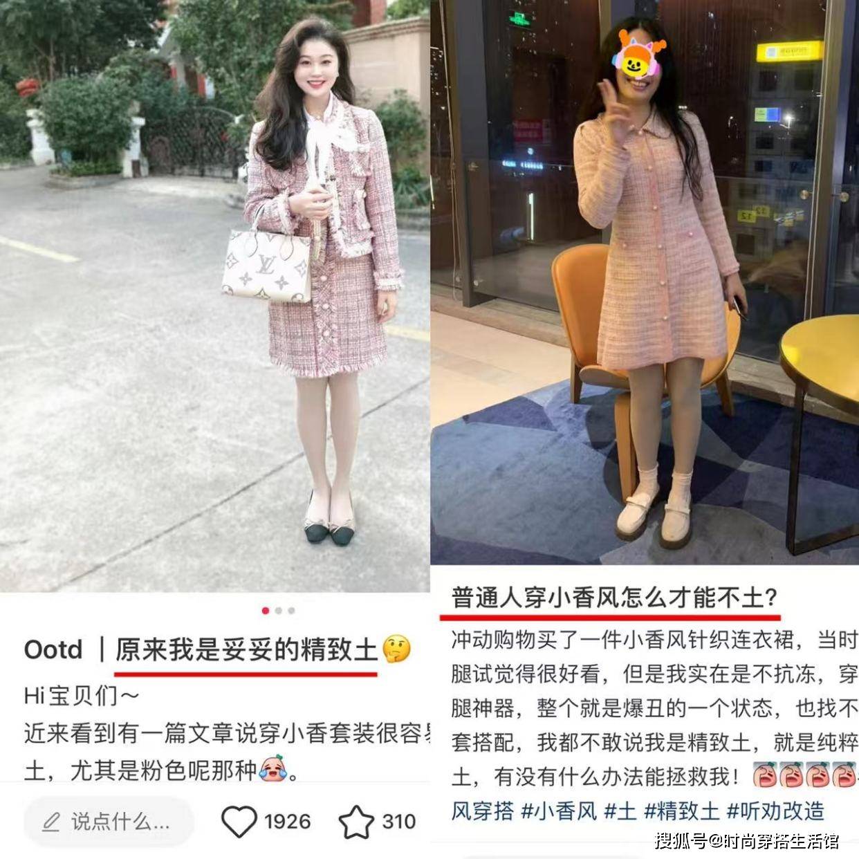 对于小香风外套的俗称特征就是精致和优雅的代名词,但也是因为其复杂的设计和粗花呢材质的面料从而成为穿搭的雷区,毕竟小香风外套的设计常常都是堆砌大量的复杂元素,比如像是亮片、水钻和蕾丝等之类,一眼看过去确实非常华丽,但视觉上却显得非常的杂乱无章,而且材质方面做工也非常的粗糙,版型还非常的不合身,对于微胖女性或者普通人来说穿上后乡土感非常重,俗称就是“精致土”的效果。