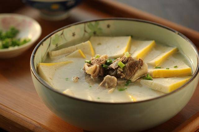 第一宝: 羊肉,羊肉是冬季养生不可错过的肉类食物,羊肉性温,入脾、胃、肾、心经,营养丰富,味道鲜美,具有温中补虚、健脾补肾、补气益血、增强免疫力等功效,还有助于温阳散寒,预防疾病,特别适合寒凉的冬季进补。推荐菜谱【鱼糕羊排汤】,用羊排炖煮是一种营养美味的家常做法,鲜美又营养,简单又好喝,还能润燥驱寒。