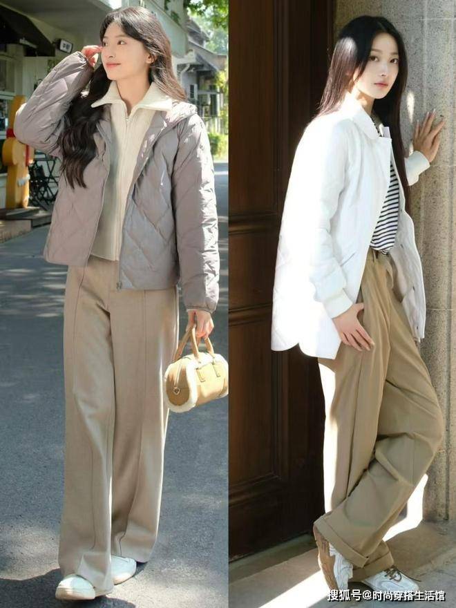 像是直筒裤简直就是每个女性衣柜中都会必备的款式,同时也是每个季度街拍中出镜率最高的NO.1,比如像是腿粗、腿型不直的人都能够穿直筒裤,直筒裤的主要特征就是直上直下的版型设计,能够完美的修饰我们整个腿型,从而让我们的腿部比例看起来又细又长,完全不用担心会暴露腿部缺点。搭配上奶奶棉服,你就是这条街最靓的仔。