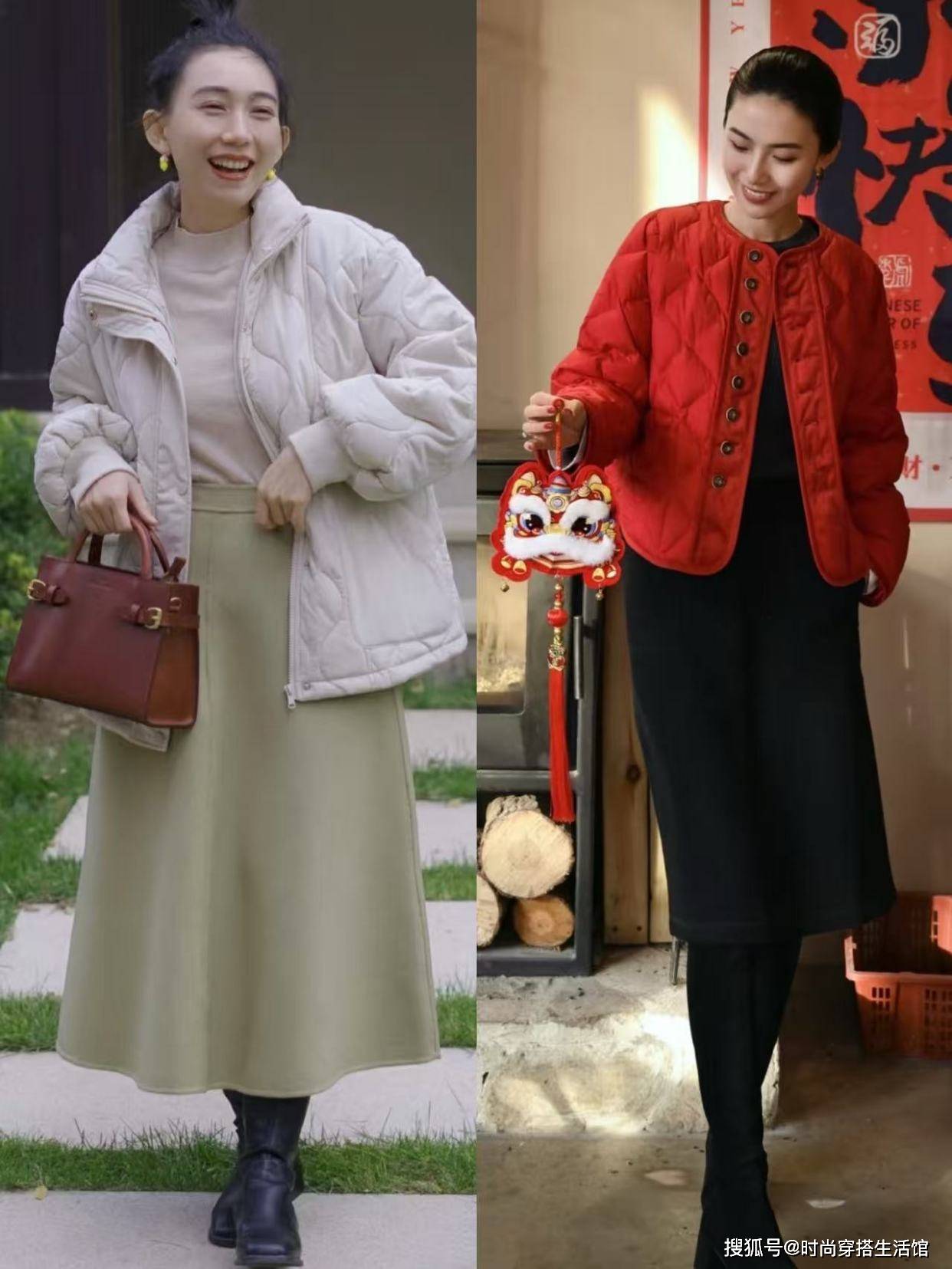 其次降温后穿奶奶棉服怎么能少了半身裙呢?尤其是A字形和直筒裙的裙子,完全不挑年龄和身材,轻松就能够遮挡住我们胯宽和腿粗的问题,关于裙子的长度我们可以选择过膝不过踝,搭配上高腰的款式,视觉上会更加的优雅和显瘦,完全不用担心整个造型会出臃肿感。