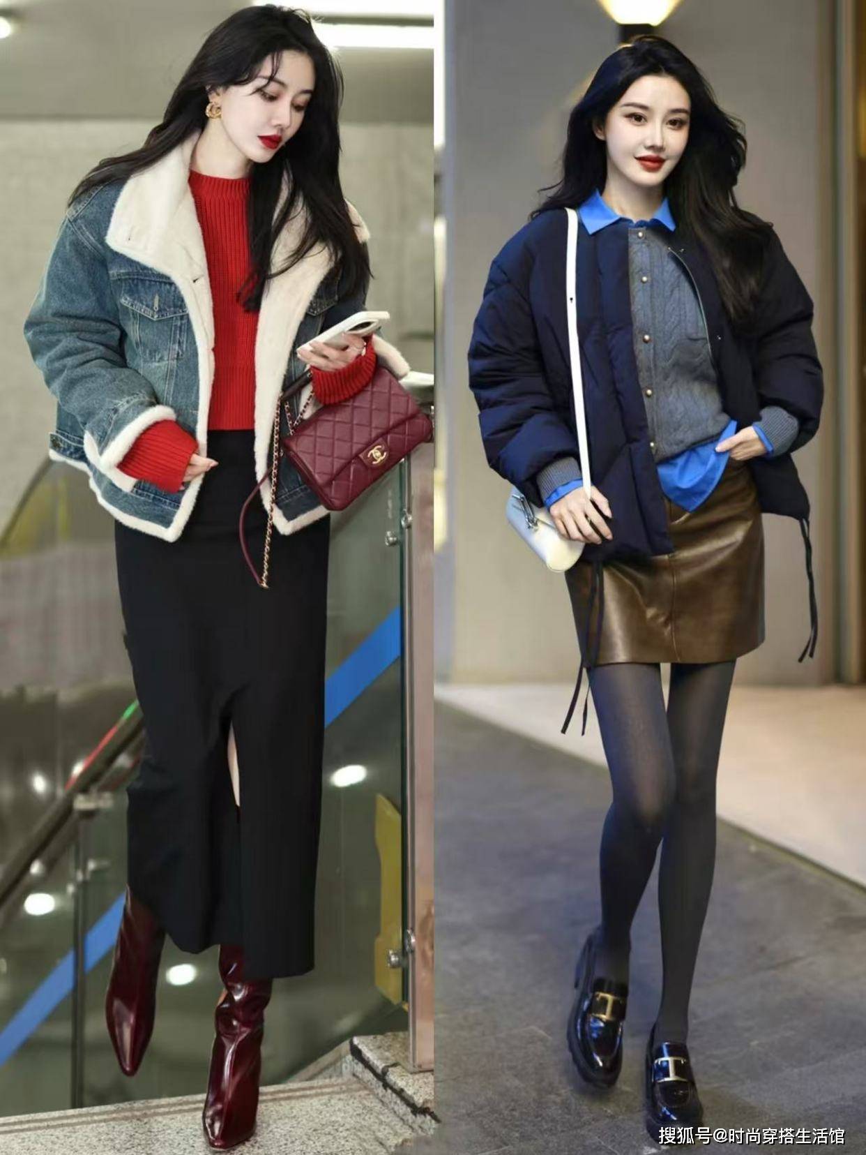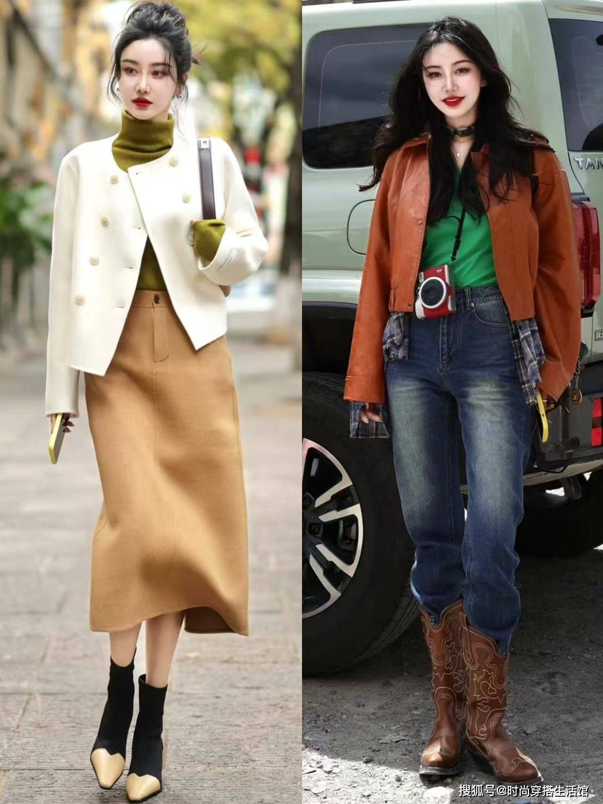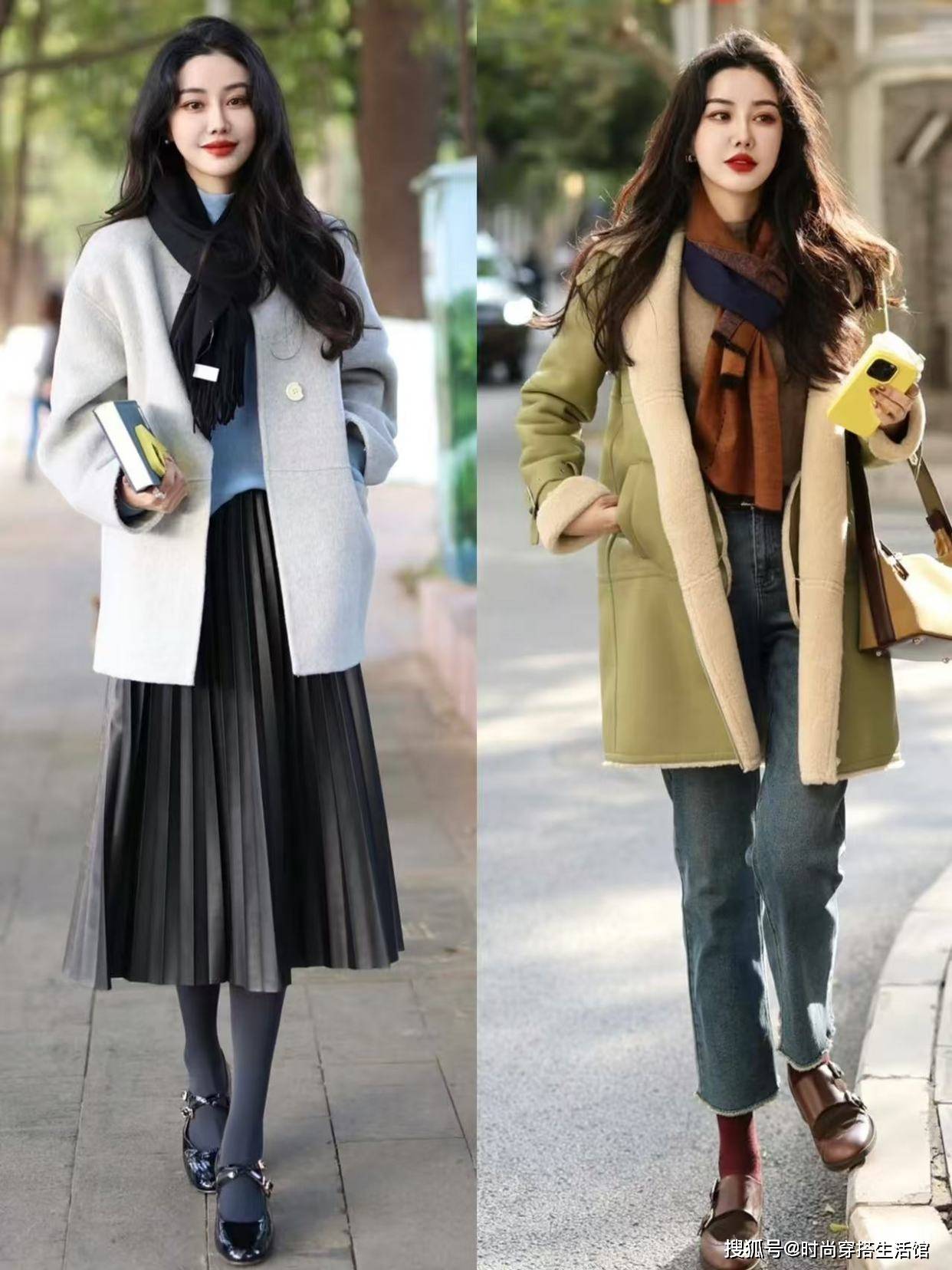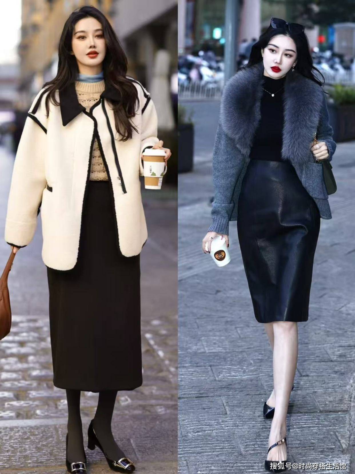 其次降温后的穿搭很多人会捂得严严实实的,一方面是为了更加的保暖,另外一方面也是为了高级感,殊不知选择这样的穿搭方式会更加的闷热和老气,那么最好的方式就是要凸显出造型的轻盈感,我们可以借助腿部露肤来达到显高显瘦的效果。