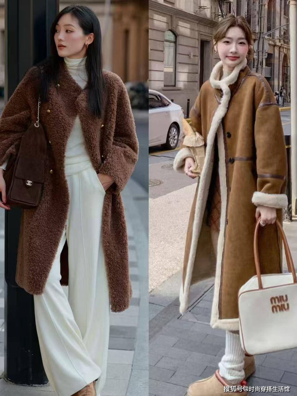 其次秋冬最常见的还有羊羔毛外套,毕竟羊羔毛面料非常的软糯和舒适,穿上后全身瞬间就被包裹得超级舒适,其次就是羊羔毛的版型是属于茧型设计,对于小个子女生来说非常的友好,虽然说羊羔毛的版型相对宽松,但我们选择过臂的长度或者是过膝不过踝的长度,不仅遮肉显高显腿长。