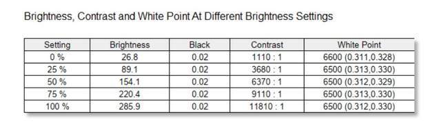色温方面,显示器在不同亮度设置下的白点表现都非常稳定,在 6500K 至 6600K 之间浮动,提供了高度一致的视觉观感。