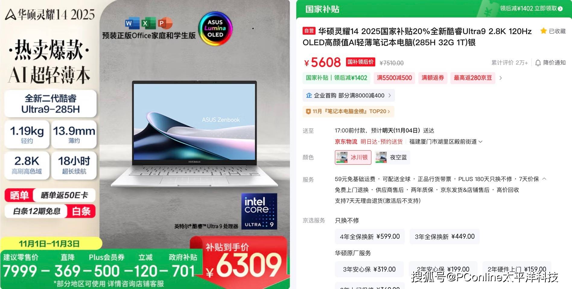 无论你是需要频繁出差的商务人士、追求效率的职场白领,还是对屏幕素质有高要求的创意工作者,华硕灵耀14 2025都能精准匹配需求,堪称双11闭眼入的AI超轻薄本首选。双11期间选购华硕灵耀14 2025,除部分地区政府补贴外,还有晒单返京东E卡、白条12期免息与Plus会员专享券等一众福利,优惠稍纵即逝,尽早选购,别错过这波年度好价!