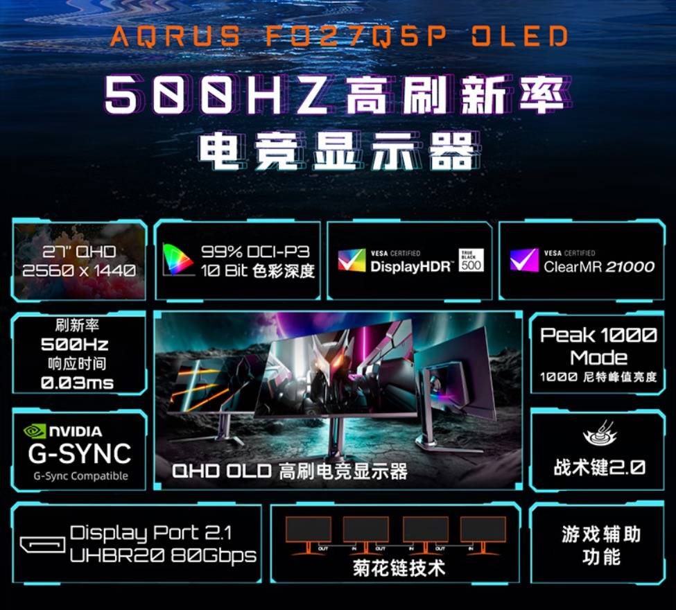 它既有QD-OLED带来的顶级色彩与对比度,又有500Hz电竞屏的极限速度;它既有2K 27英寸的沉浸视野,又有一键切换24英寸的竞技专注;它既有DP 2.1的未来战备,又有三年烙印保固的当下安心。