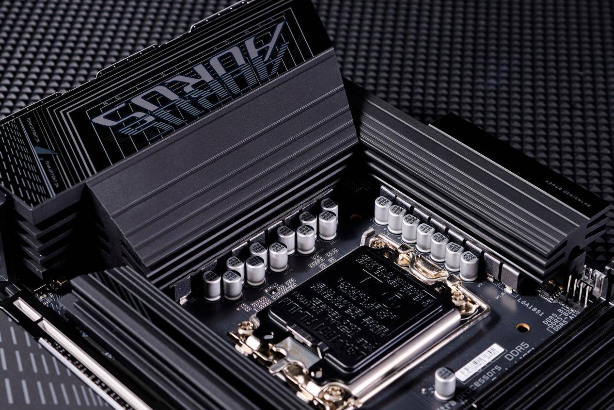 技嘉B860M电竞雕在供电散热方面下足了功夫,主板右上角覆盖了大面积且厚实的散热装甲,这些装饰不仅提升了主板的美观性,更重要的是为供电元件提供了高效的散热,确保在高负载下依然保持低温稳定。