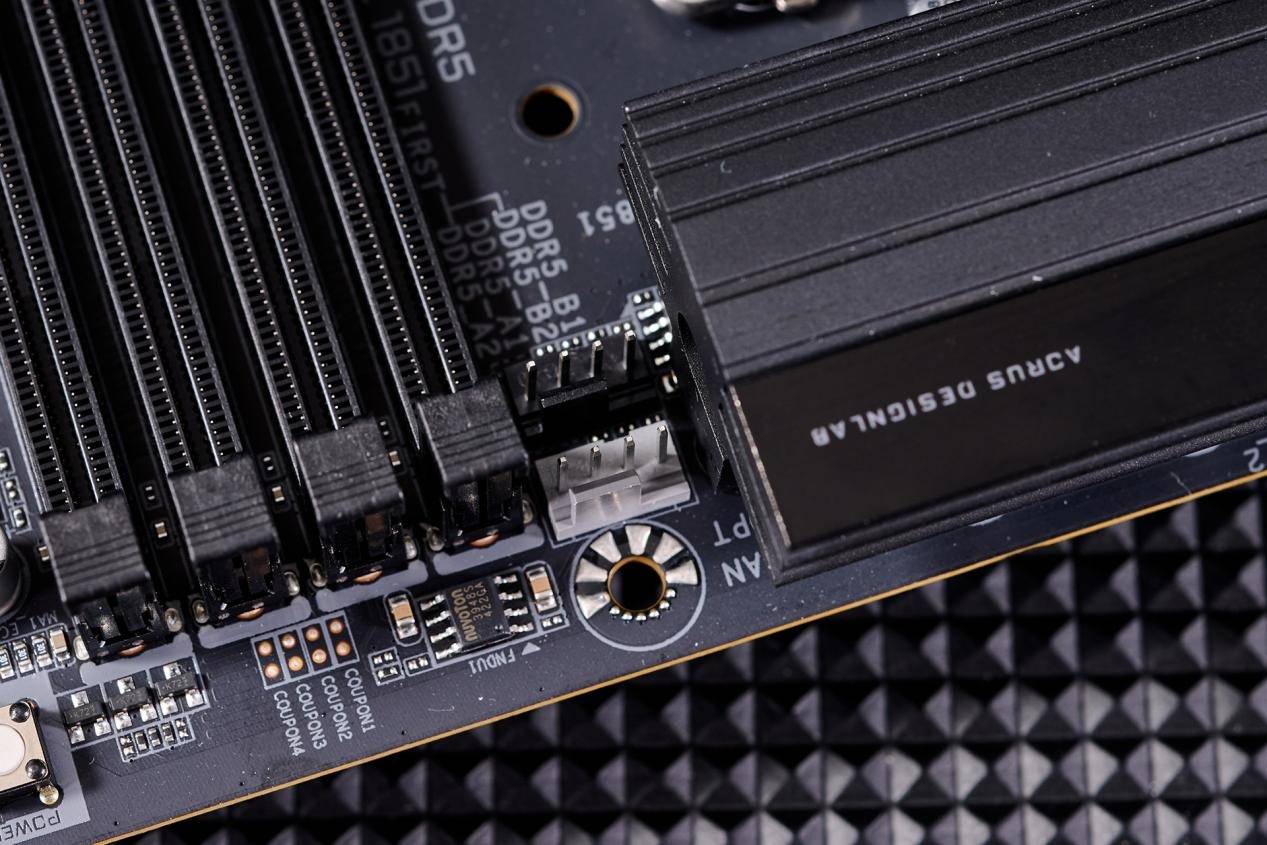 内存插槽内部为两个4Pin风扇与水泵接口,可连接散热设备实现智能温控。