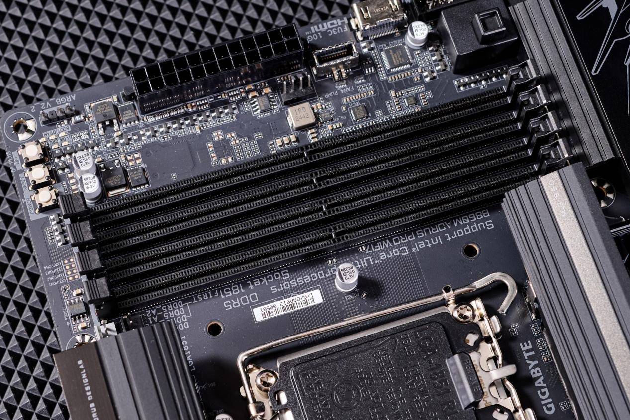 内存插槽方面,技嘉B860M主板配备了4条DDR5规格插槽,最大支持256GB双通道内存规格,最高频率可达到DDR5-9200(OC)。内存插槽采用加强型镀银设计,有效降低信号干扰,提升高频稳定性。配合EZ-XMP技术,可一键开启高频内存配置,轻松实现性能跃升。