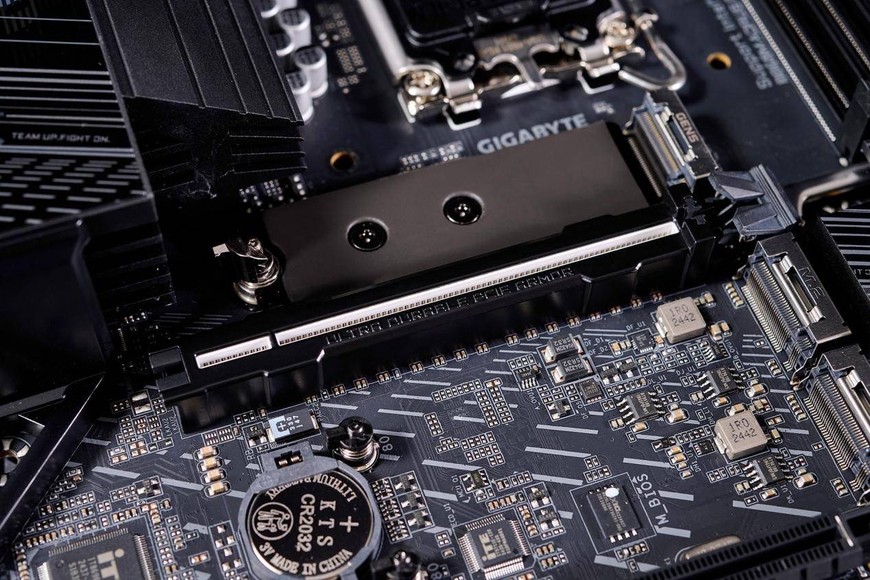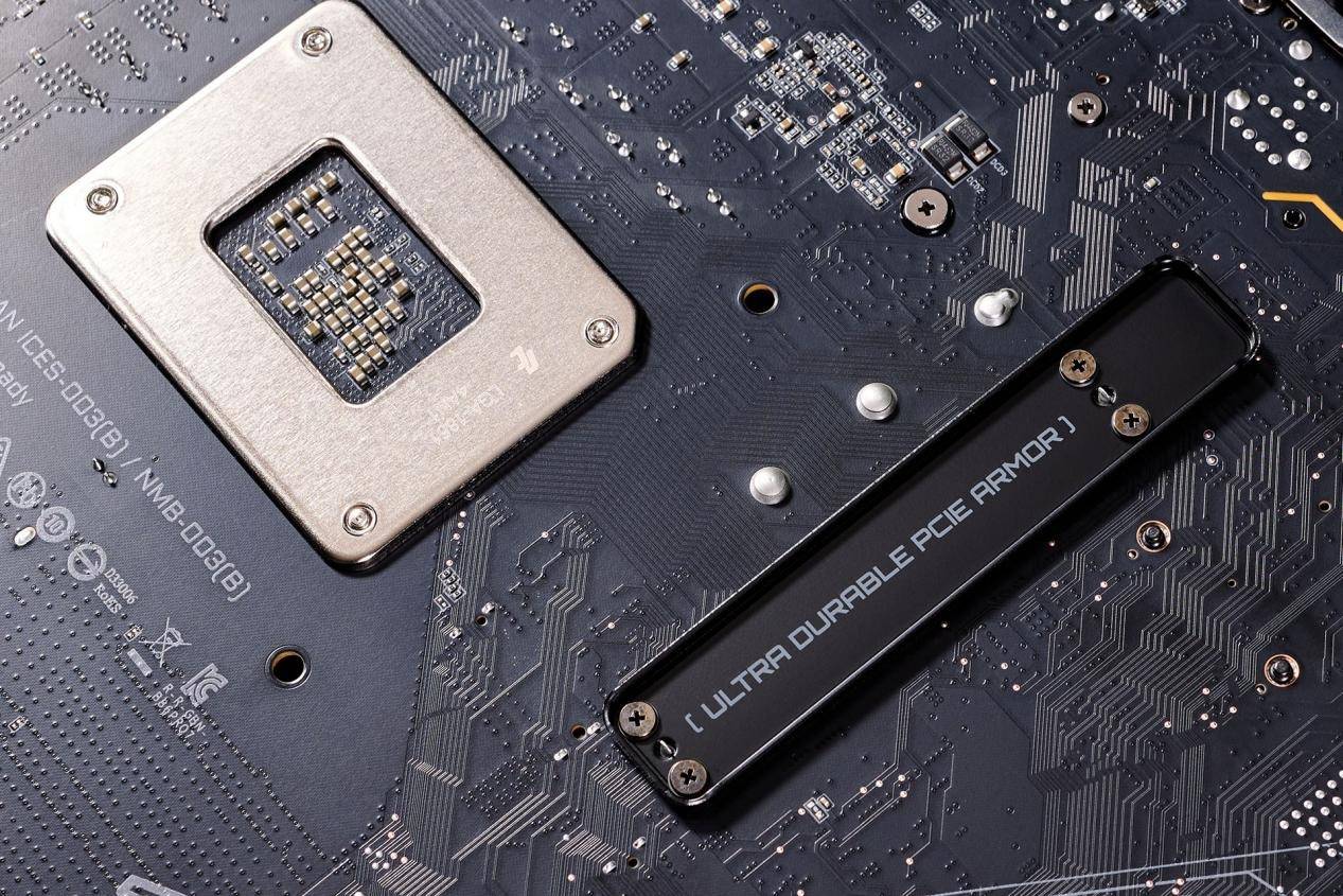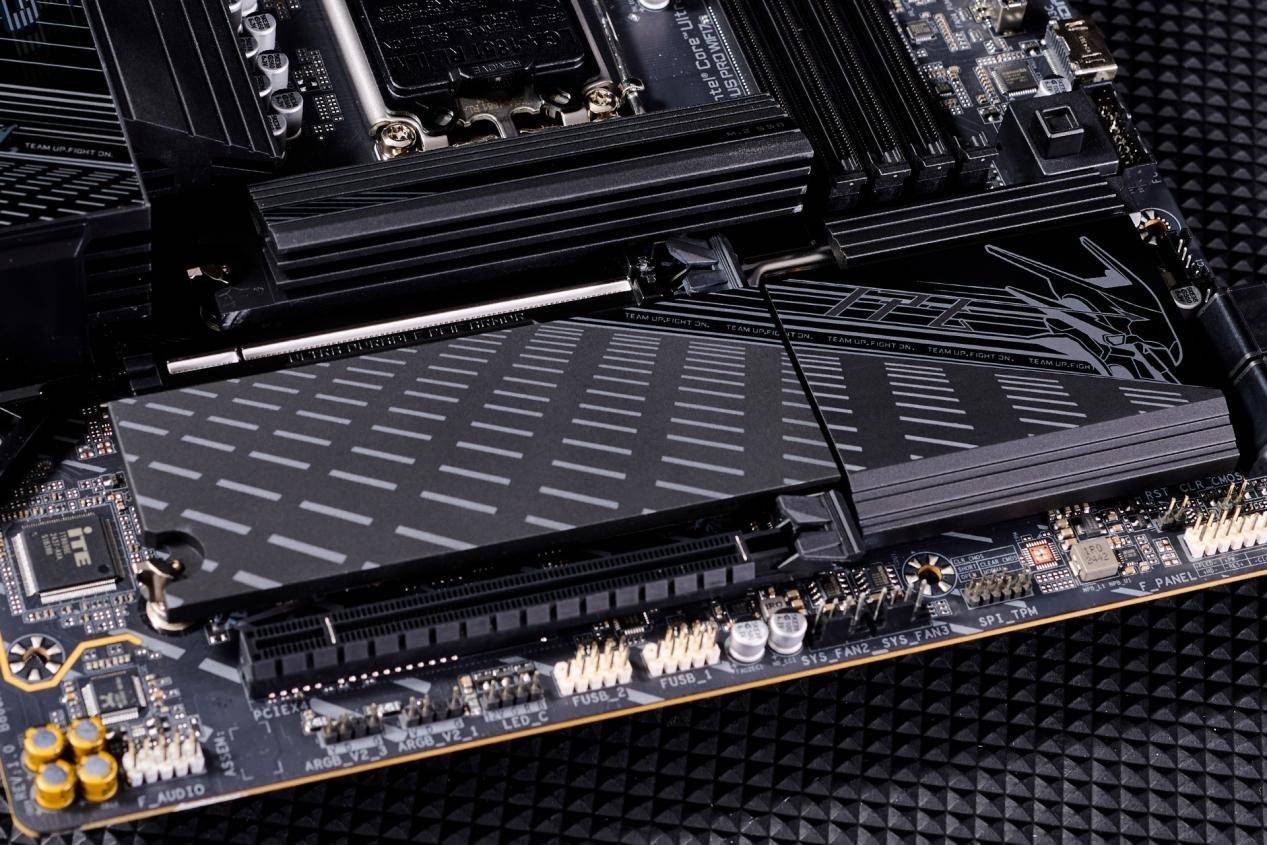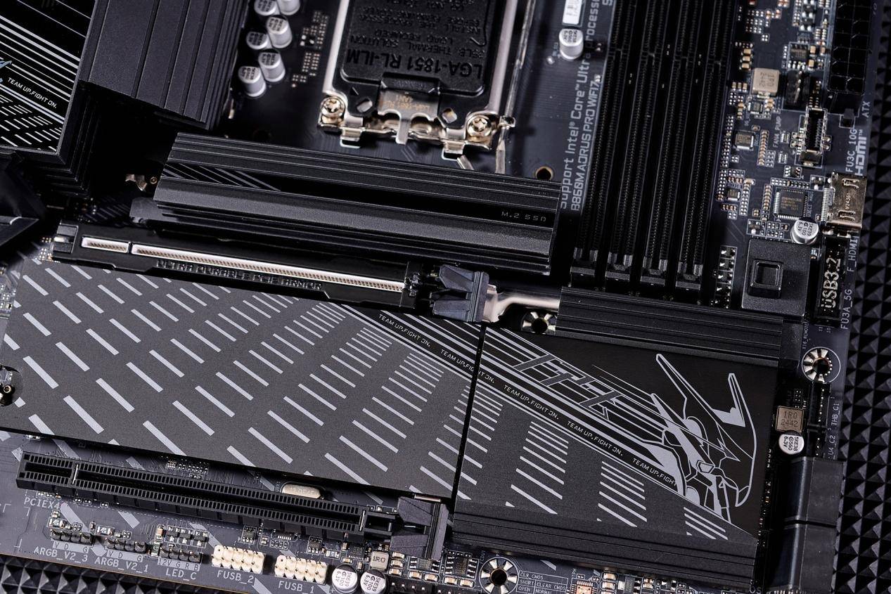 尤其是M2A_CPU插槽直连CPU,支持PCIe 5.0 x4模式,可以充分发挥新一代PCIe 5.0高性能的全部潜能。因此其正面与背面均配上了散热装甲,并配合上高系数导热垫辅助散热 。