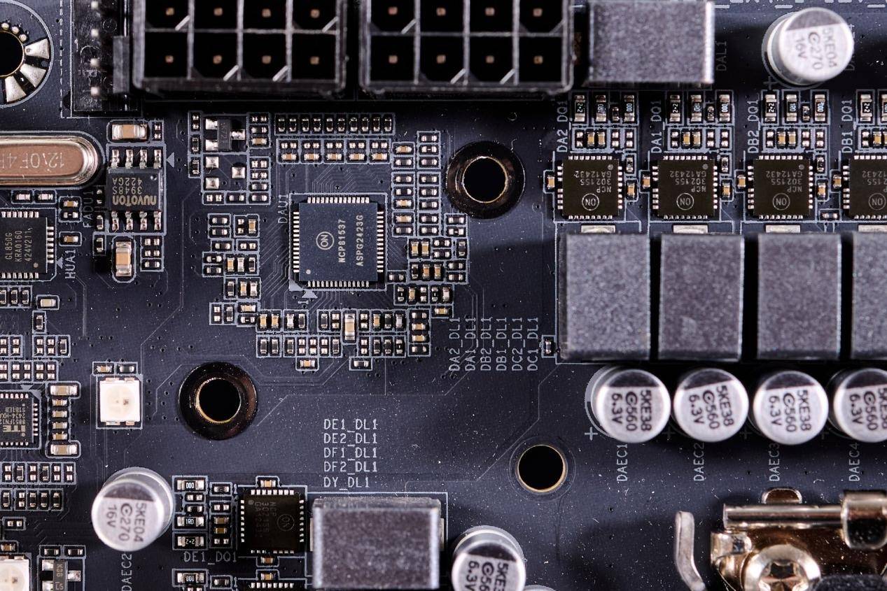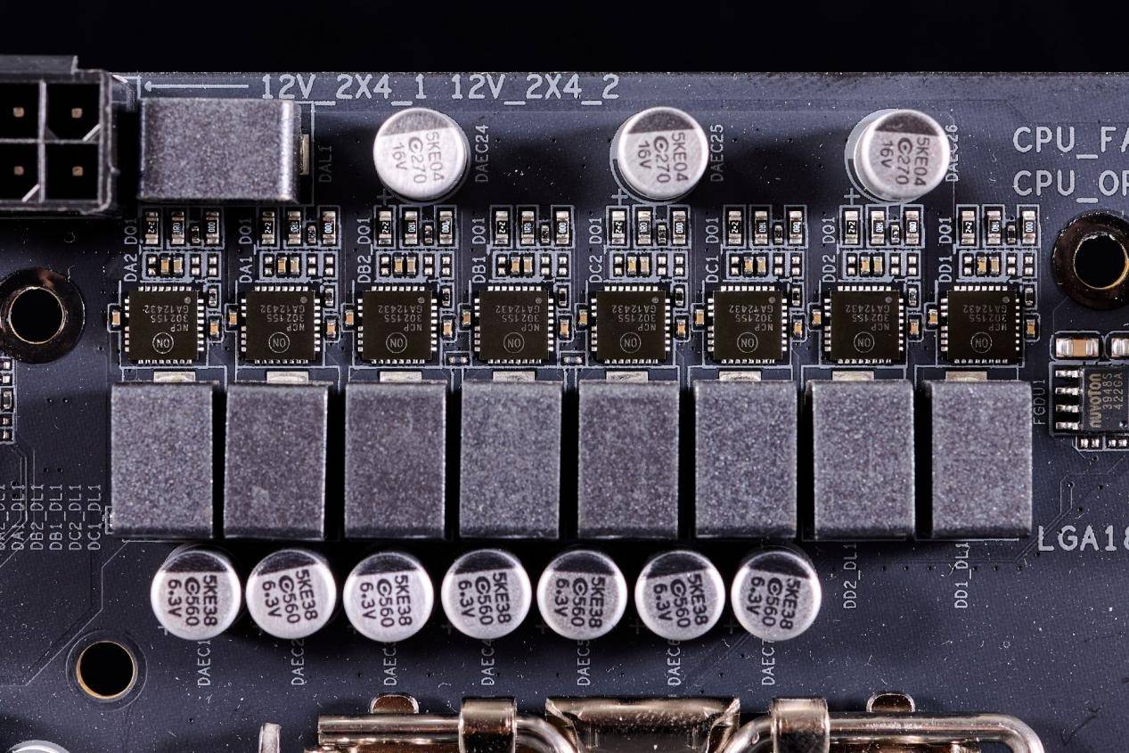 供电方面也相当豪华, 12+1+2相供电设计,每相均搭载60A DrMOS,搭配上8层高规格PCB,能够为CPU提供强劲且稳定的电力支持。
