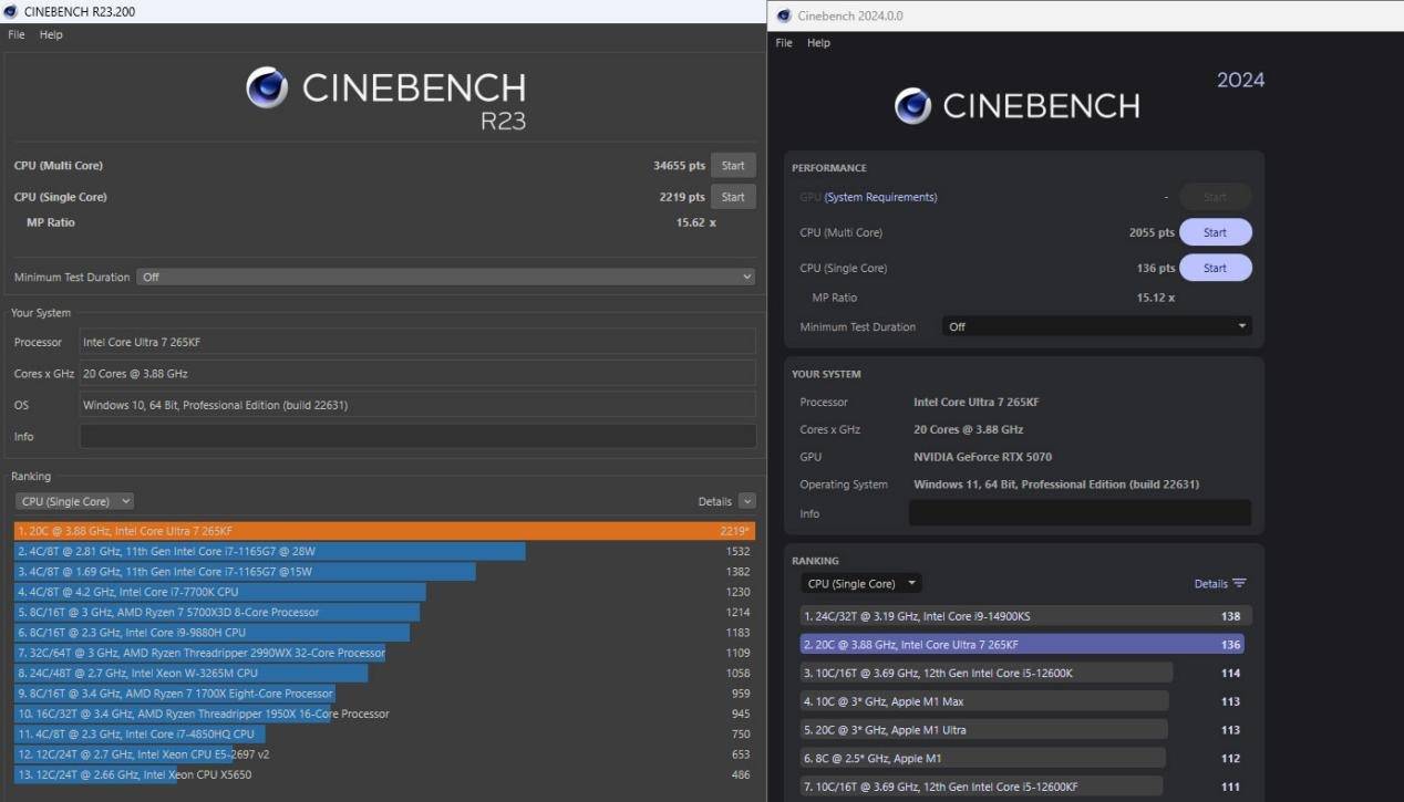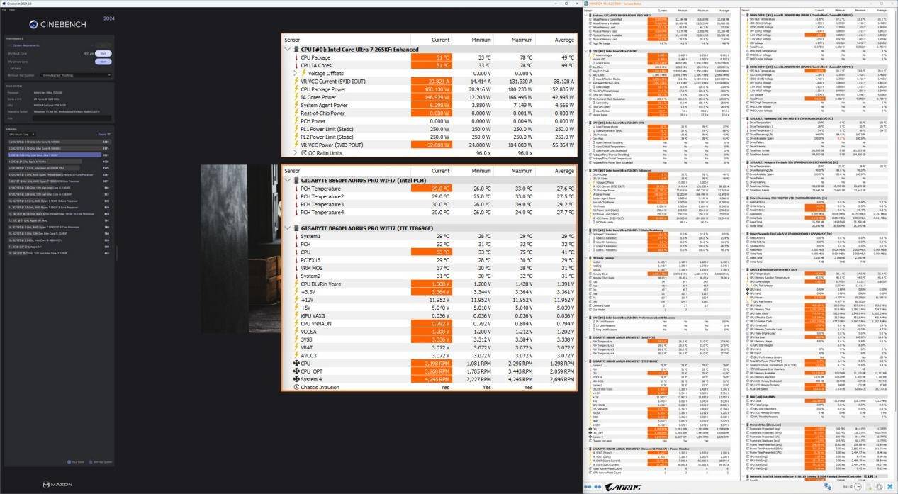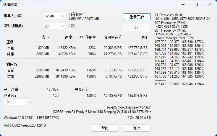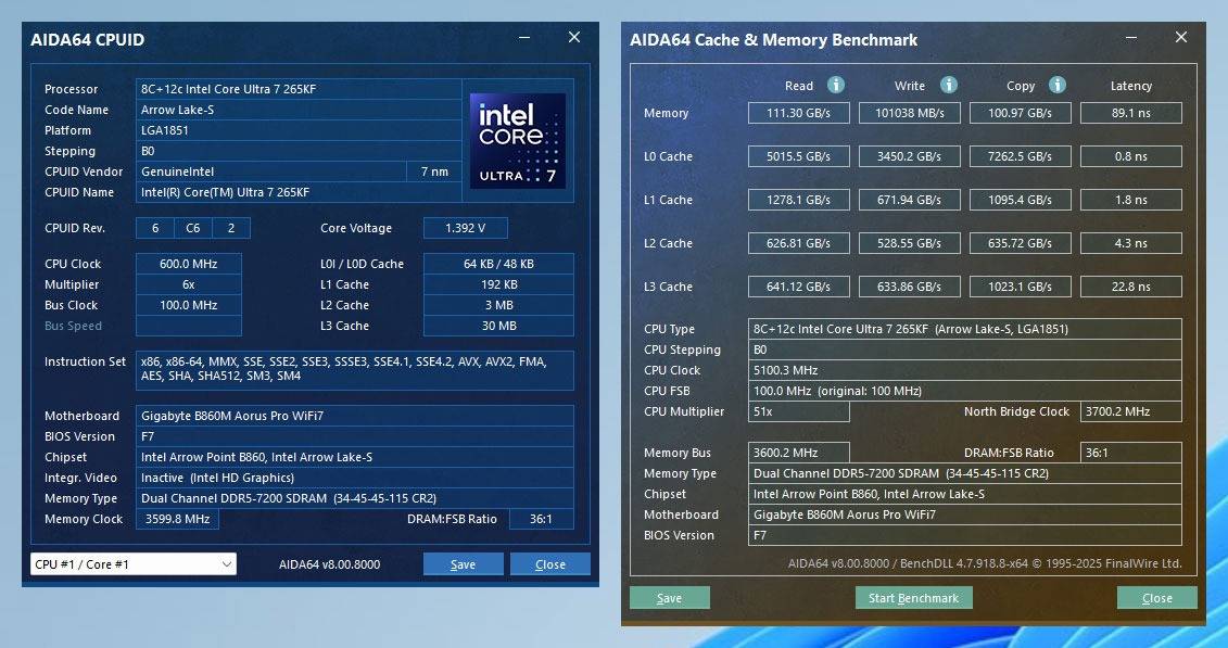 结合上CINEBENCH与7ZIP软件测试来看,搭配上技嘉B860M电竞雕使用的Intel 酷睿ULtra 7 265KF处理器性能发挥相当出色。CINEBENCH R23多核得分突破34655分,CINEBENCH 2024多核得分也达到了2055分。