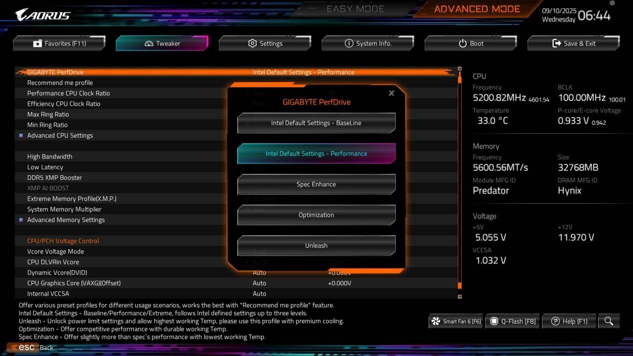 技嘉还提供了丰富的处理器预设档供大家选择,一般情况下,直接使用Intel Default Settings即可获得稳定且强劲的性能表现。