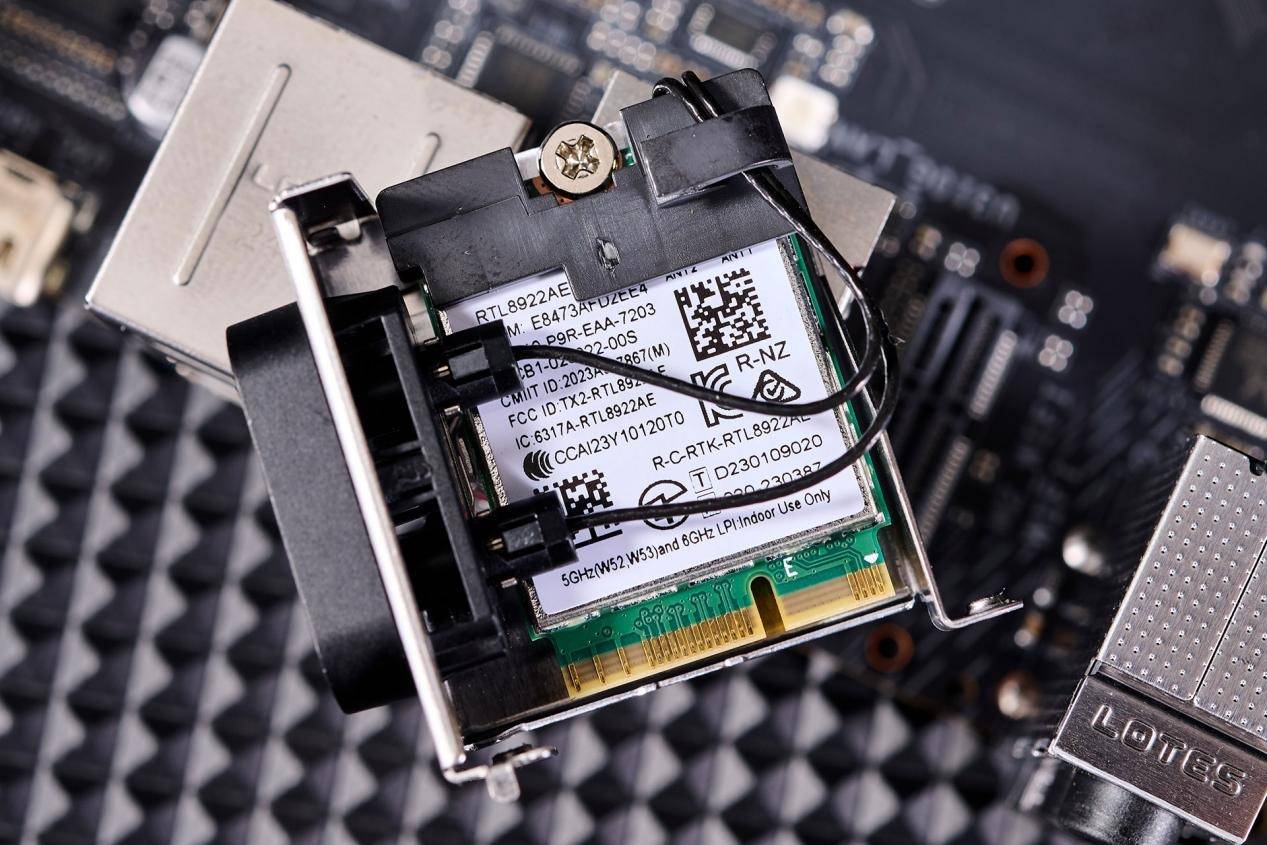 后置IO接口也相当丰富:4个USB-A 2.0接口、4个USBUSB-A 3.2接口(蓝色)、DP接口、HDMI接口、USB4接口、2个USBUSB-A 3.2 Gen2接口(红色)、2.5G网络接口、WIFI7天线接口,以及音频接口。