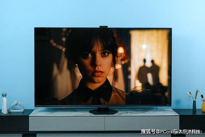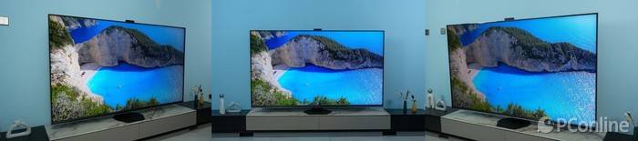 在实际测试中,我们将电视分别摆放在房间中央与侧面两个位置,播放同样的画面内容进行对比。无论是从正面观看,还是从近乎45°的侧面角度,画面亮度和色彩都几乎没有衰减。
