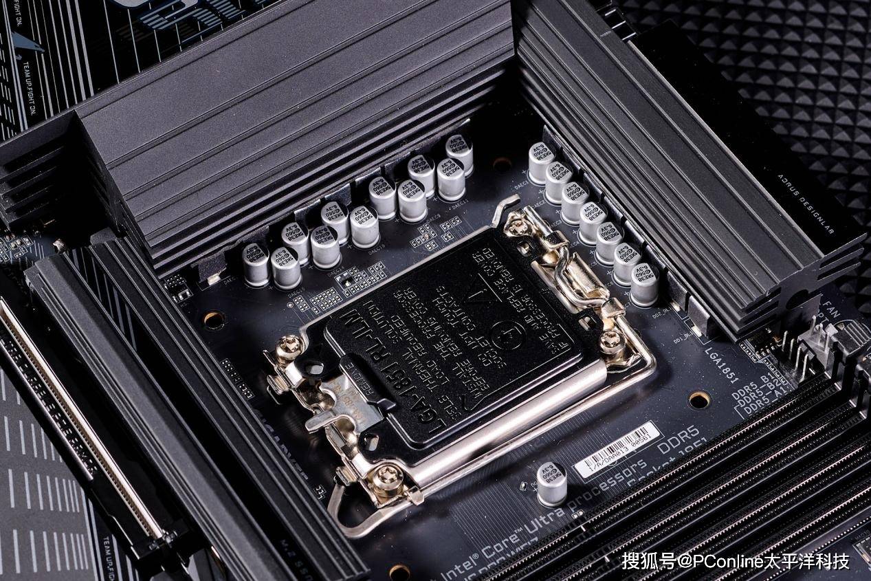 技嘉B860M电竞雕在供电散热方面下足了功夫,主板右上角覆盖了大面积且厚实的散热装甲,这些装饰不仅提升了主板的美观性,更重要的是为供电元件提供了高效的散热,确保在高负载下依然保持低温稳定。