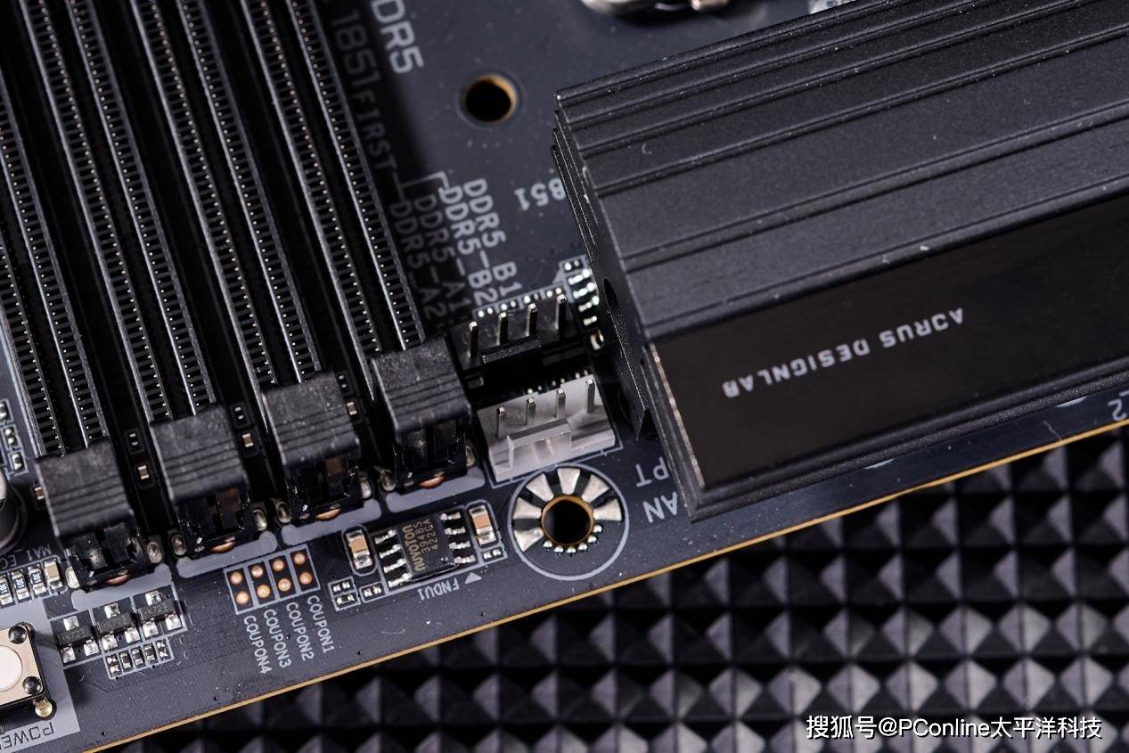 内存插槽内部为两个4Pin风扇与水泵接口,可连接散热设备实现智能温控。
