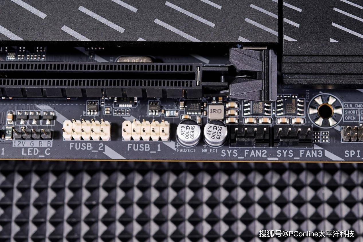 还提供了两组USB-A 2.0扩展接口、4Pin PWM风扇接口,以及+12V RGB灯效接口