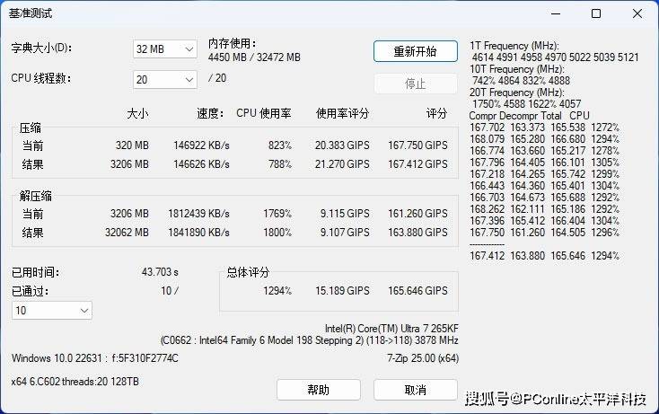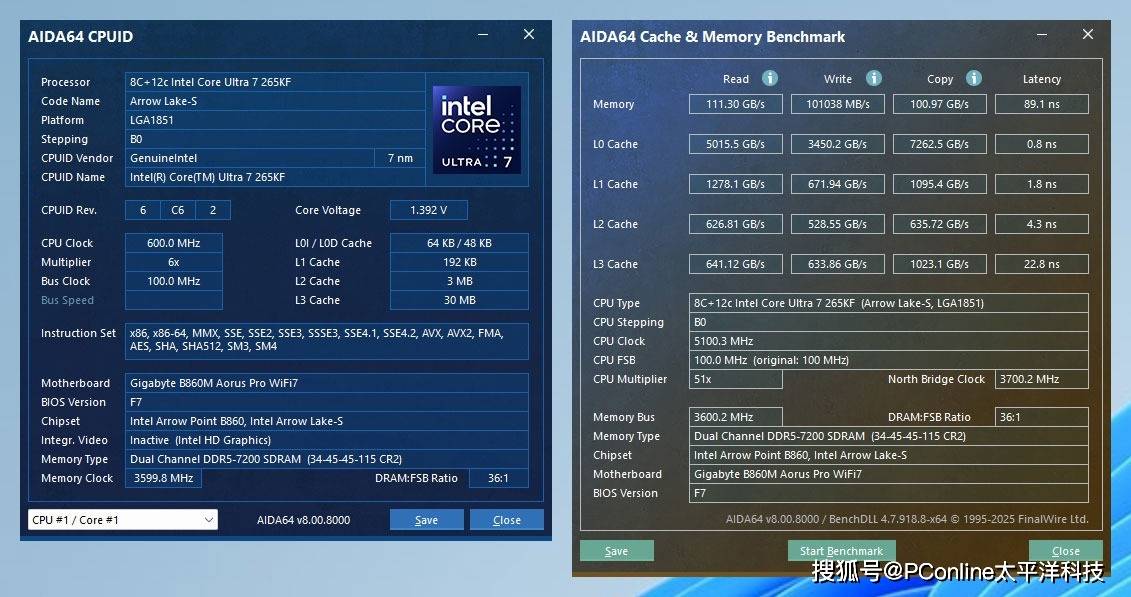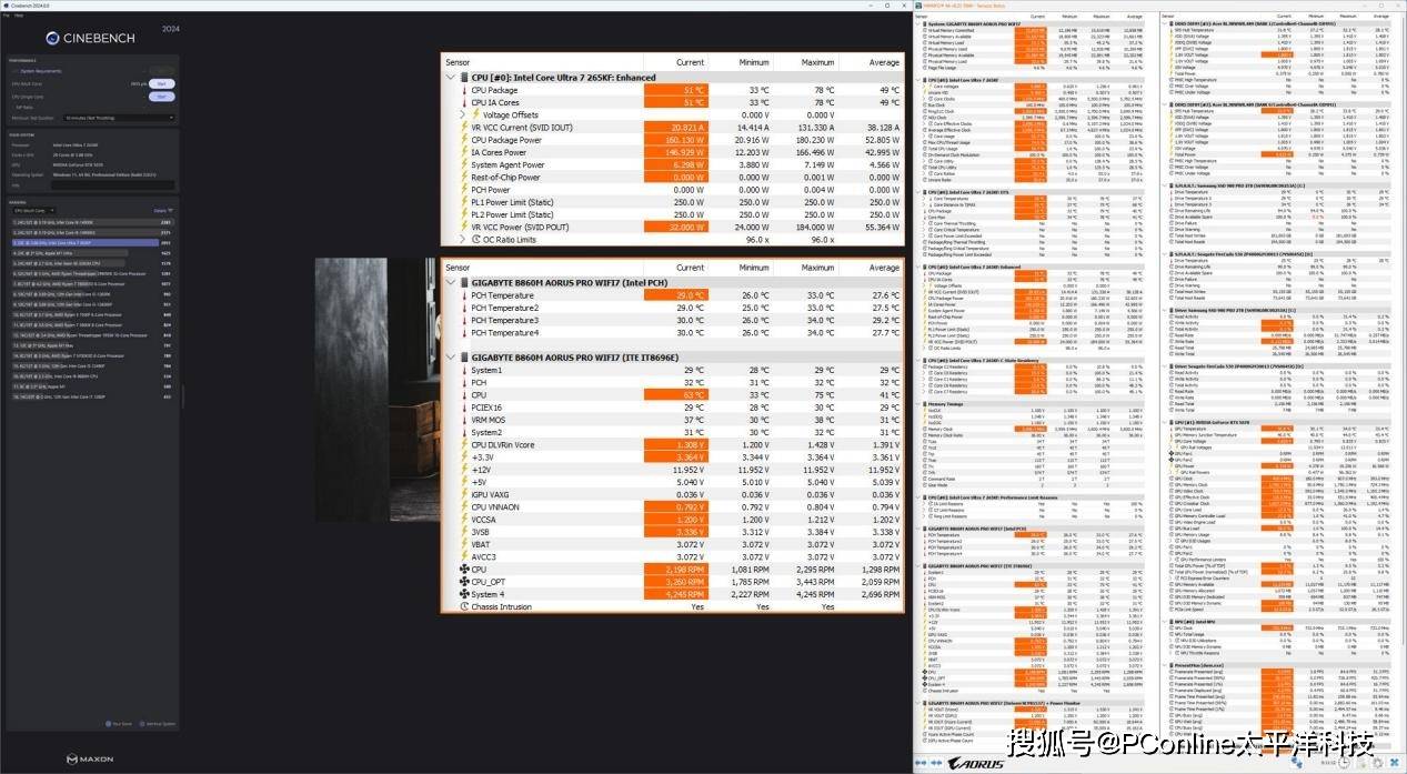 结合上CINEBENCH与7ZIP软件测试来看,搭配上技嘉B860M电竞雕使用的Intel 酷睿ULtra 7 265KF处理器性能发挥相当出色。CINEBENCH R23多核得分突破34655分,CINEBENCH 2024多核得分也达到了2055分。