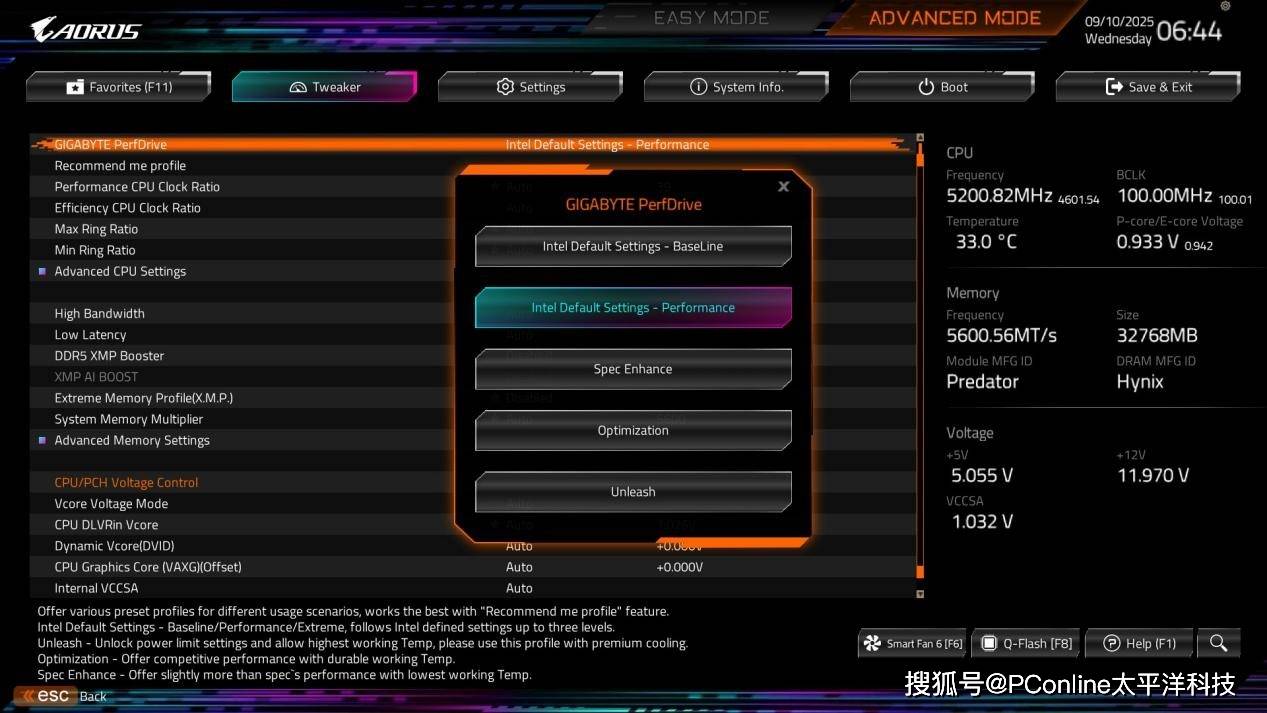 技嘉还提供了丰富的处理器预设档供大家选择,一般情况下,直接使用Intel Default Settings即可获得稳定且强劲的性能表现。