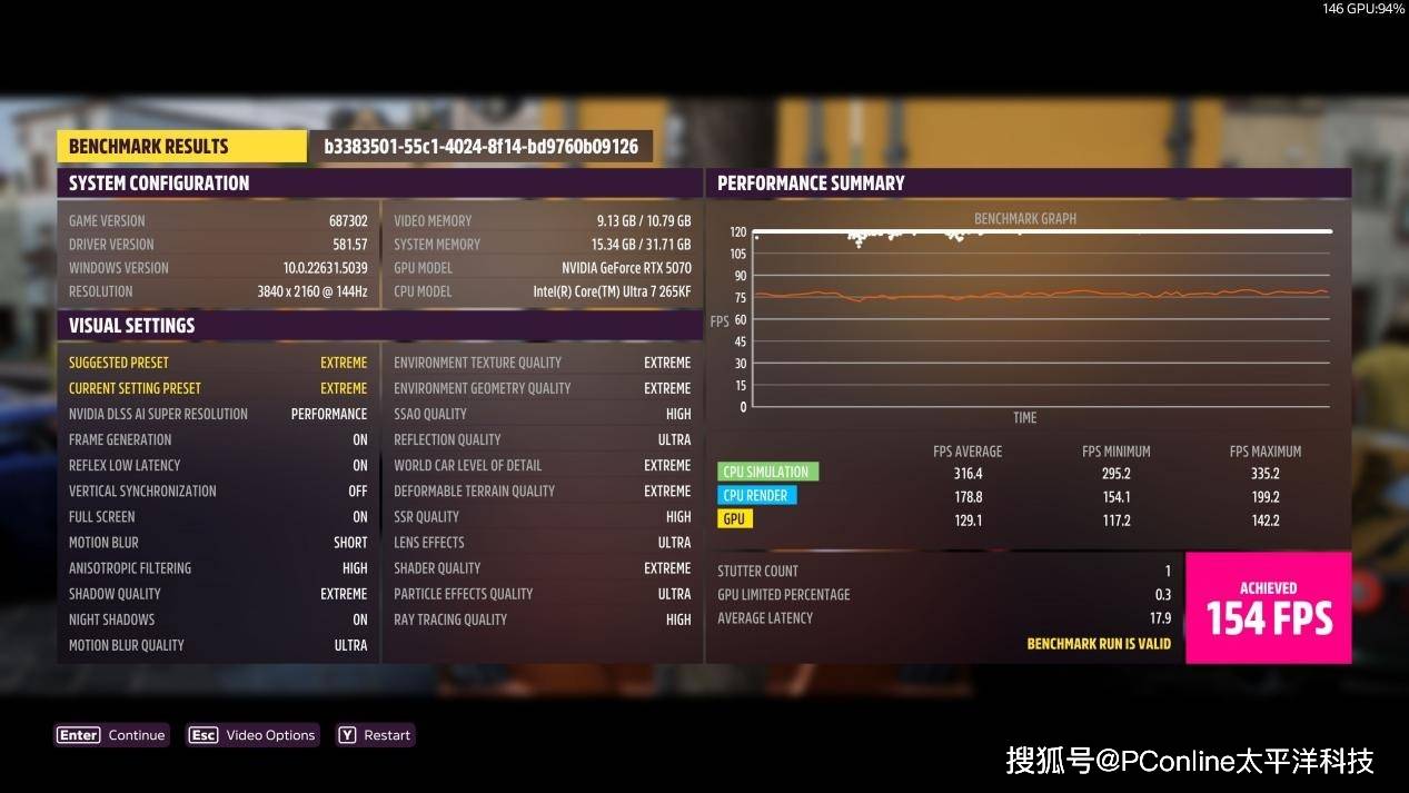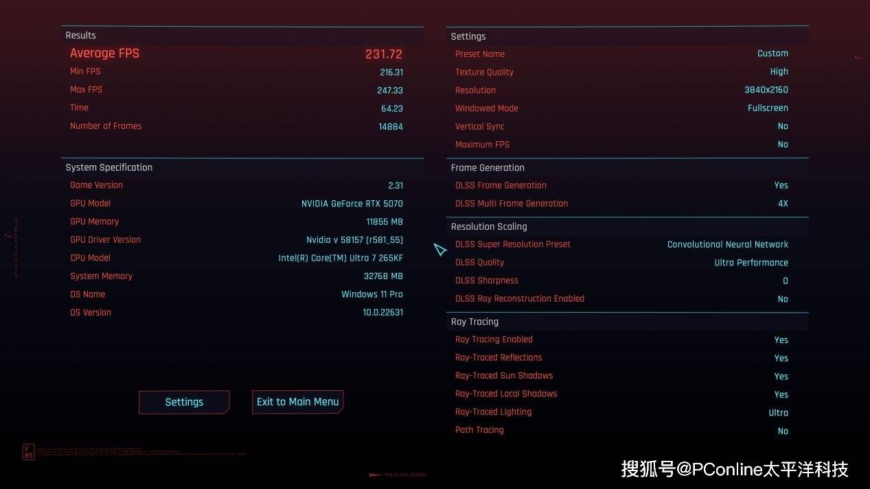 最后是游戏性能测试,Intel 酷睿ULtra 7 265KF处理器与技嘉B860M电竞雕的搭配能够充分发挥NVIDIA GeForce RTX 5070的图形处理实力,在游戏性能方面有着出色的表现。