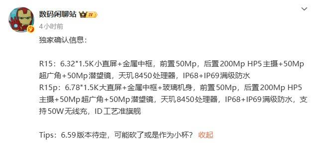 15系列也即将发布。据悉,该系列两款机型均搭载天玑8450处理器。标准版Reno 15采用6.32英寸1.5K小直屏设计,配以金属中框,前置5000万像素镜头,后置2亿像素HP5主摄 +5000万像素超广角+5000万像素潜望镜组合,支持IP68与IP69双重防水等级。Reno15 Pro则升级为6.78英寸1.5K大直屏,金属中框搭配玻璃机身,同样搭载5000万像素前摄与三主摄系统,支持50W无线充电,定位准旗舰级别。