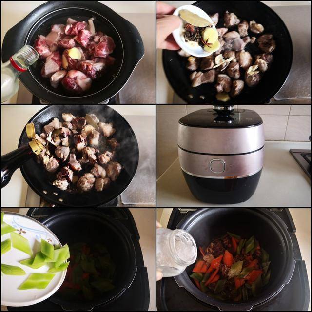 制作过程: 将羊排剁成块; 莴苣和胡萝卜去皮后切成片备用; 将羊排放入冷水锅中,加入少许姜片和高度白酒去腥,焯出浮沫后捞出备用。烧热锅放入适量的油, 加入焯好的羊排放进锅中煸炒干水分, 加入姜片和八角等大料放进锅中翻炒香,加入少许料酒和酱油翻炒均匀; 将炒过的羊排放进电炖锅中,加入少许水, 加盖后按下电炖锅上炖煮牛羊肉的功能键, 待到还剩下十分钟时加入准备好的莴苣片和胡萝卜片,加入少许盐和胡椒粉调味,翻炒均匀后继续焖煮熟既可。