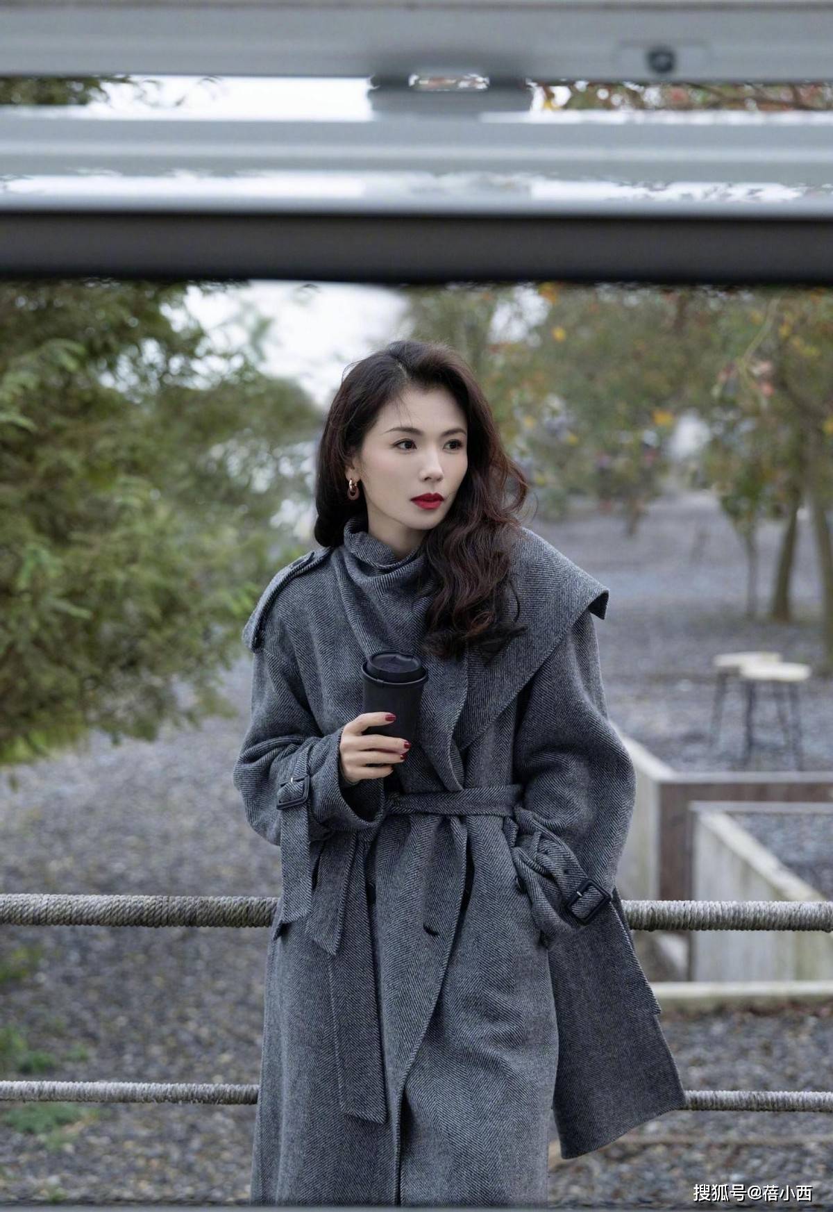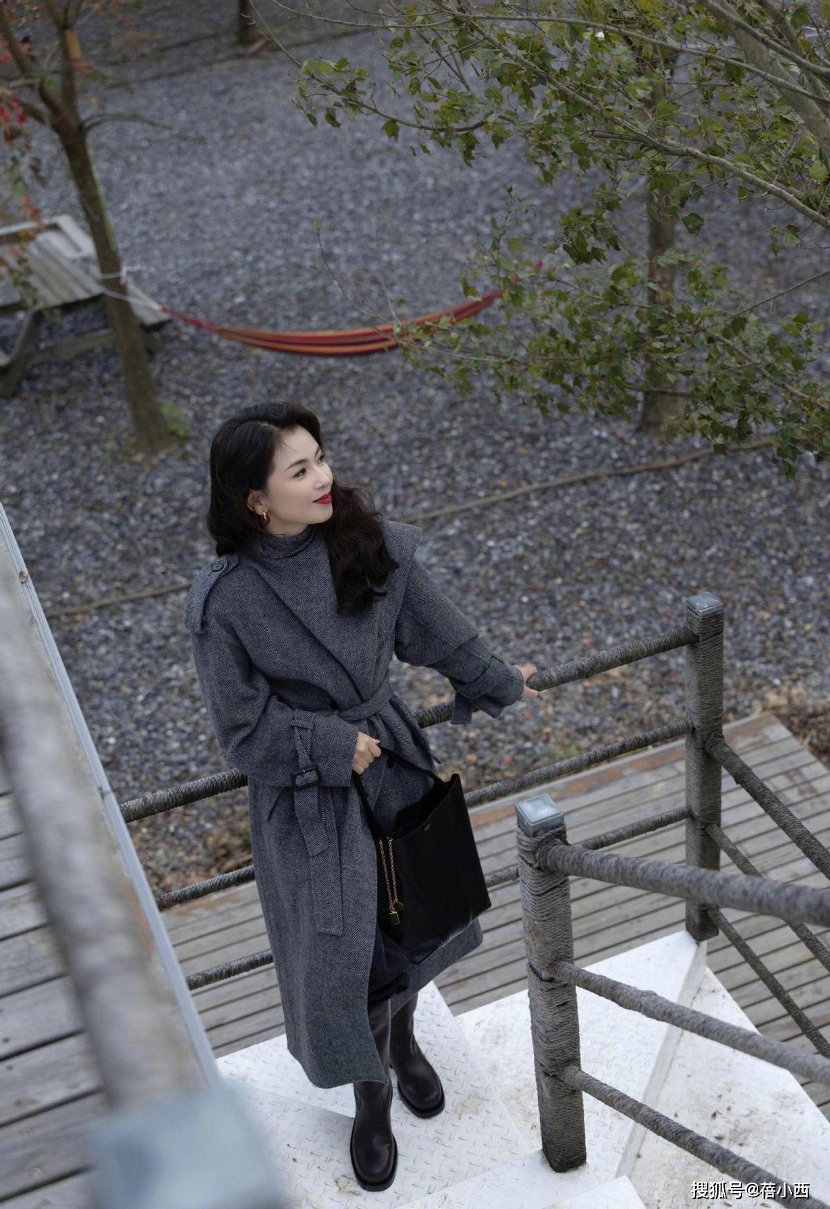 刘涛选的深灰色羊绒大衣很高级,也是今年很流行的款式,这种低饱和的“水泥灰”自带冷调质感,长度盖过小腿肚,刚好露出脚踝和靴口的留白,不会压个子,又把秋冬的慵懒感拉满。大衣的腰带设计也很妙,系成松垮的结而不是紧勒住腰线,既保留了随性感,还悄悄收住了廓形大衣,显瘦增高。
