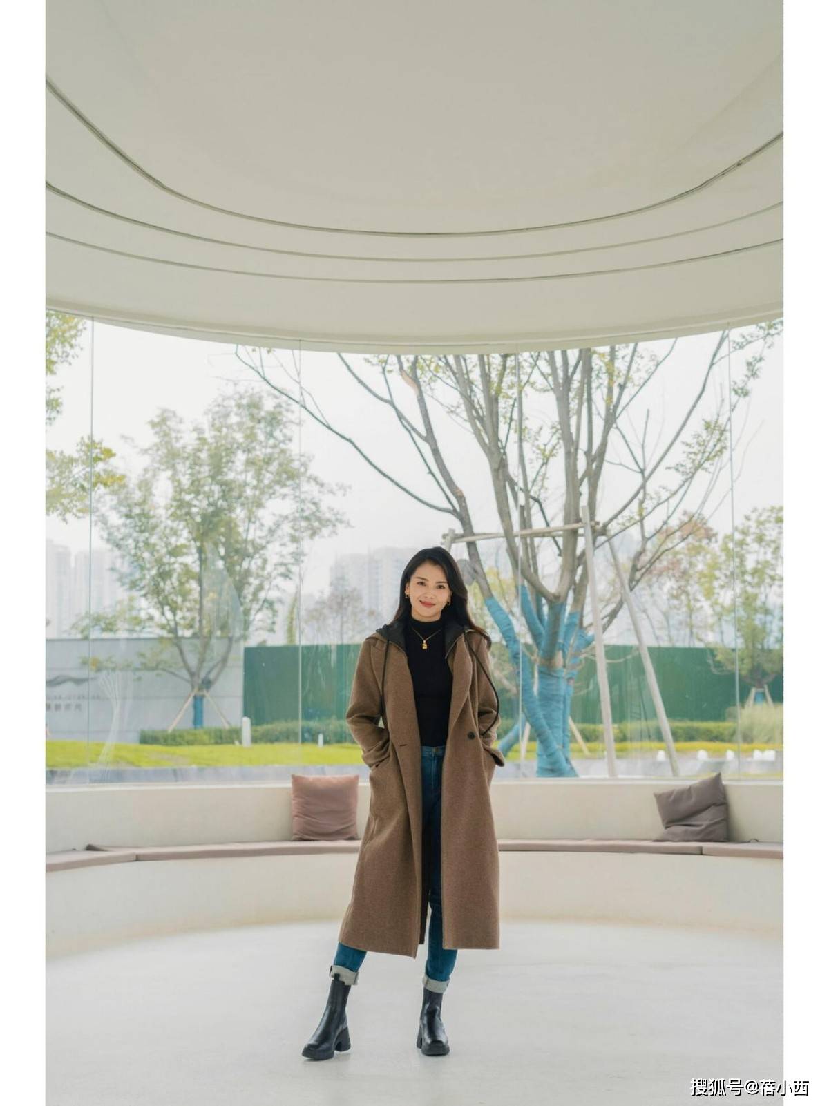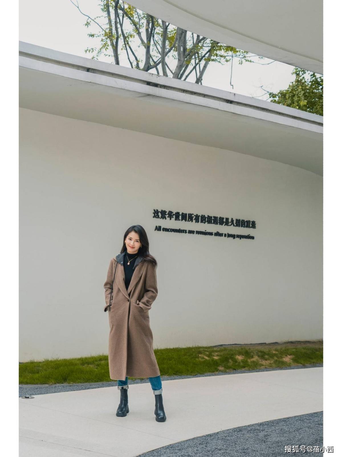 最后这一身驼色长款大衣可谓是秋冬的“万能单品”,但她选的是偏暗的“焦糖驼色”,饱和度更低,对黄皮更友好,长度到小腿中间,走动时露出裤脚,刚好修饰比例,看起来一点都不会拖沓,反而自带贵气感。