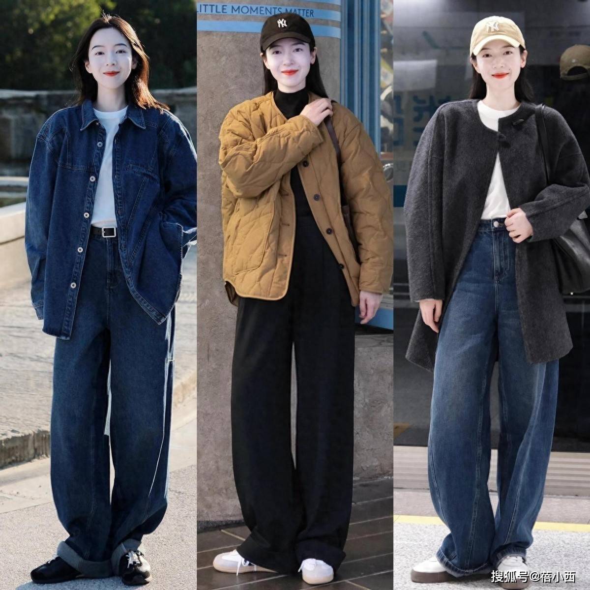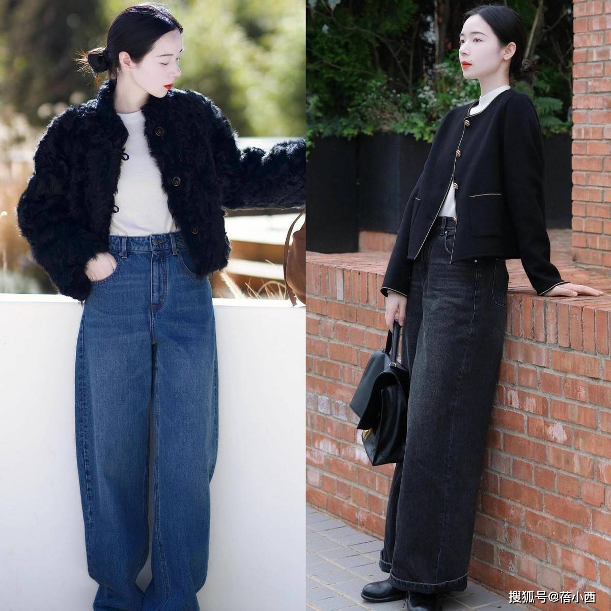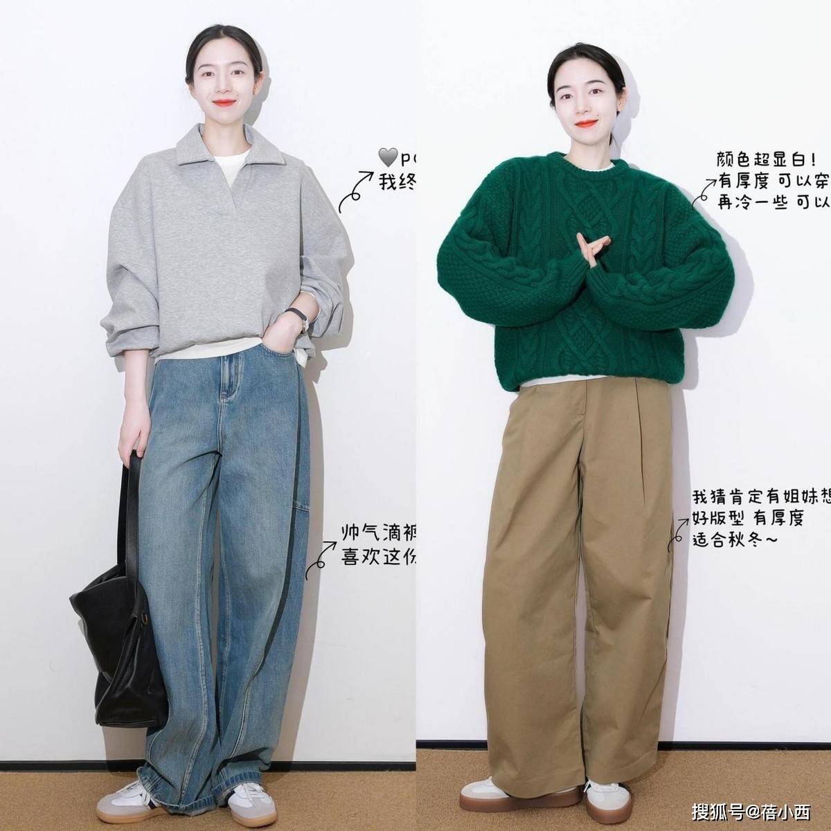 还有基础款的阔腿裤,也是秋冬季节的万能单品,可以搭配棉服,大衣,自带遮肉显瘦的效果,记得一定要选择材质挺括的阔腿裤,更有利于修身。