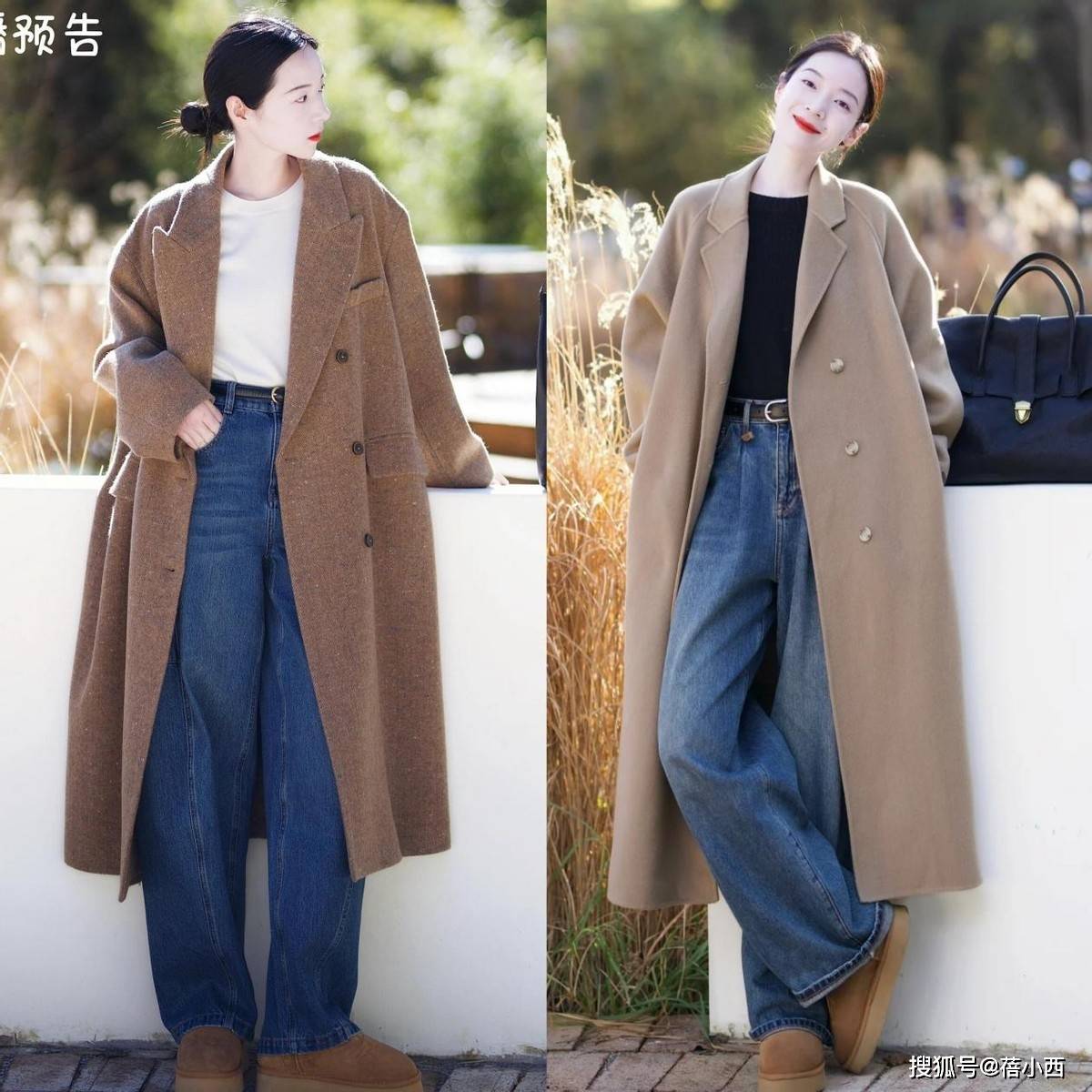 日常搭配中,最稳妥的搭配是同色系深浅组合,选择一种干净色作为主色,再用深浅不同的同色系单品作为辅助,最后用中性色作为点缀,比如棕色大衣搭配黑白色基础款打底衫,下半身搭配蓝色牛仔阔腿裤,整体统一又有层次。