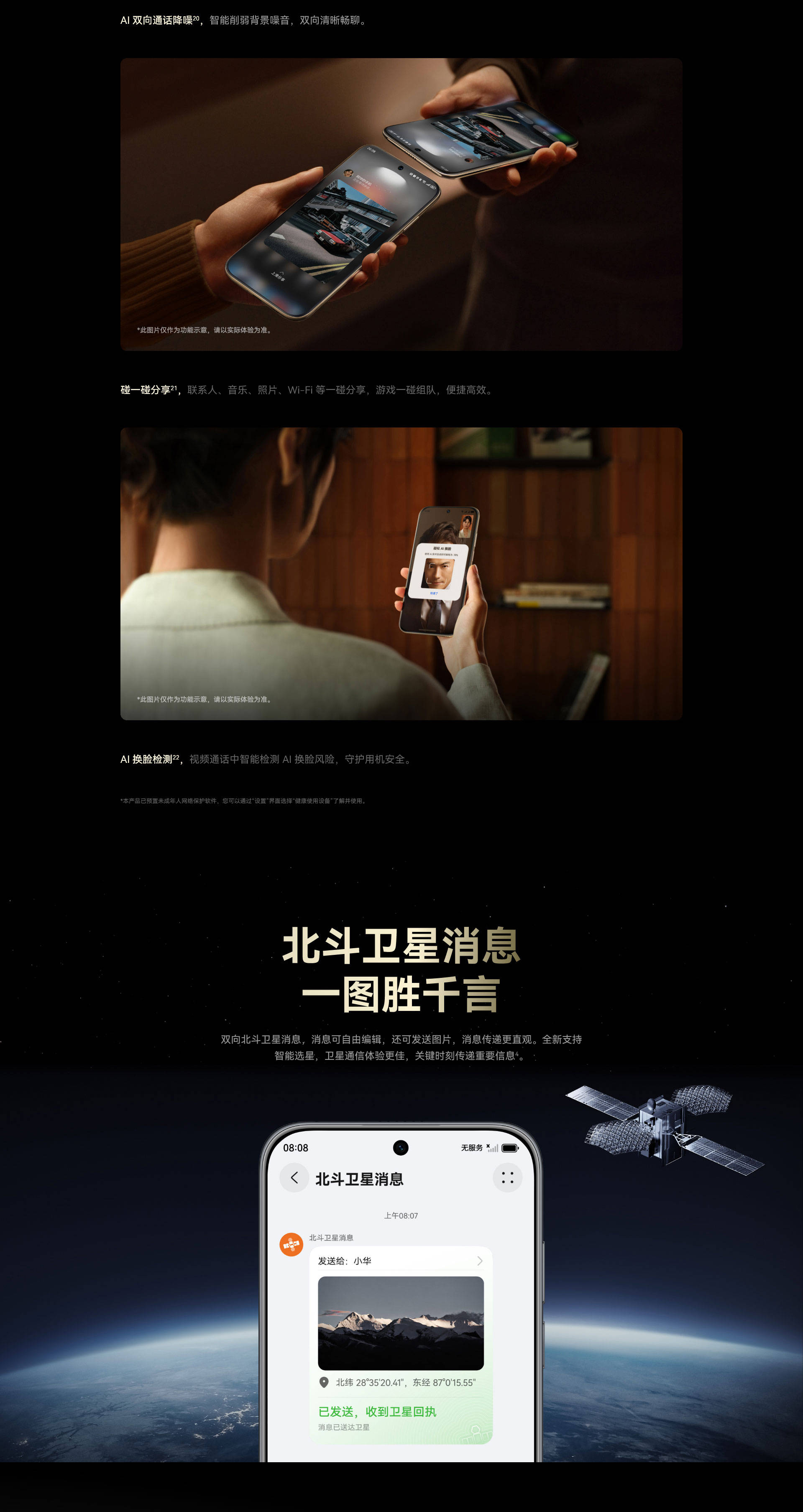其他配置上,该机支持红外、NFC、Wi-Fi 7、全新鸿蒙 AI、北斗卫星消息、天际通、双频 GPS + 四频北斗等功能。