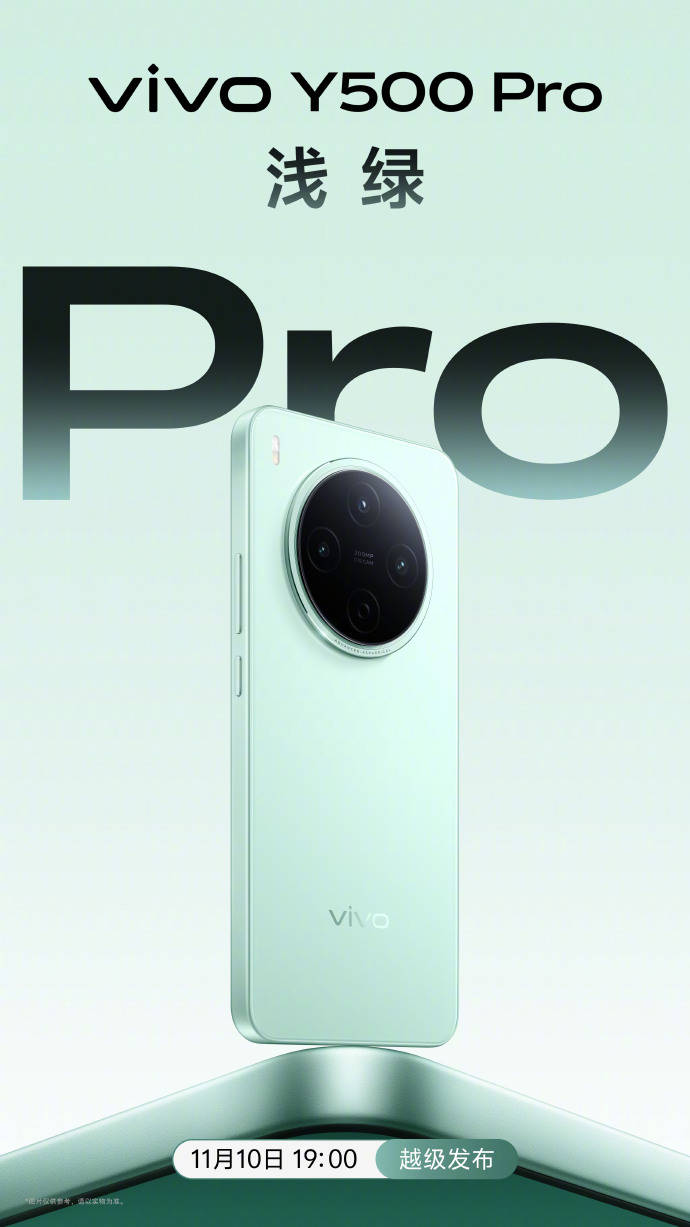 【太平洋科技快讯】11 月 6 日消息,vivo 官微昨日公布了 Y500 Pro 新机的四款配色,分别为祥云金、浅绿、柔粉与钛黑。该机被官方定位为“国民小旗舰”,将于 11 月 10 日 19:00 发布。