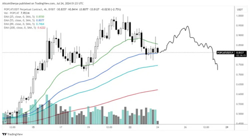 另一位市场观察人士VikingXBT也对该代币发表了评论。在他看来,Popcat在ATH之后的表现“在较低的时间框架内是有意义的”。这位分析师指出,该代币“击中了很多人的心理目标”。