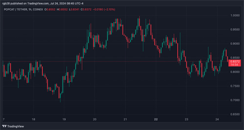 7月25日的最新消息报道,Popcat (Popcat) 这个基于索拉纳的表情币,在成为首个市值达到10亿美元的猫主题代币后,成为了过去一周的头条新闻。过去一个月里,该代币的价格飙升了超过230%,创下了历史新高。然而,一位加密货币分析师警告投资者,这种猫主题的热潮可能会面临调整。