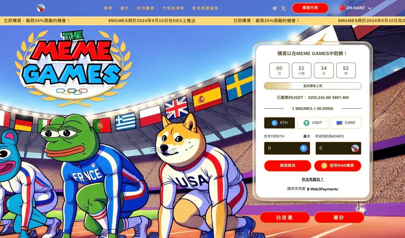 在 Solympics 币价飙升的同时,另一枚奥运主题的代币——The Meme Games(MGMES)也受到了投资者的追捧,该币在预售一周内筹集了超过 $264K。一些加密货币分析师也表示看好 $MGMES 代币的未来表现。