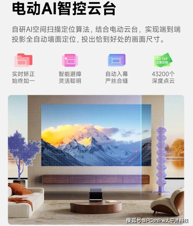 当贝S7 Ultra Max搭载电动AI智控云台,支持上下180°、左右360°转动,配合43200个深度点云校正,开机后能自动识别墙面、避开插座等障碍物,精准入幕无需手动调节。当贝AI OS 6.0接入多个人工智能大模型,通过AI智能体,不仅能控制播放进度,还能解答影片彩蛋、推荐相似作品,执行一些复杂的操作等等。Type-C接口实现手机电脑极低延迟投屏,红外信号让它无缝融入智能家居系统,从开机到观影的全过程都充满科技温度。