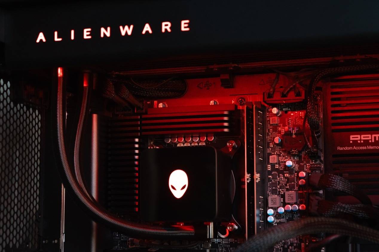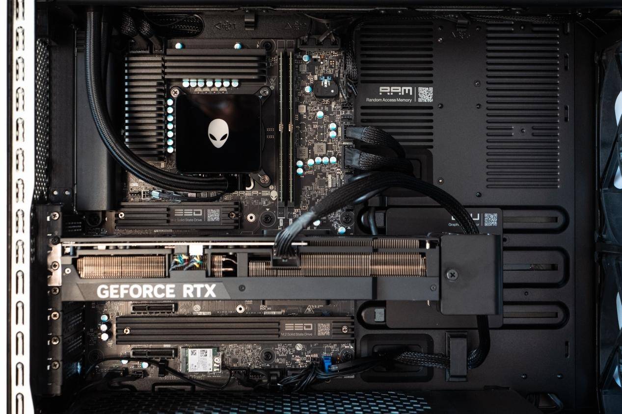 它们都和机箱内部水冷泵上的 Alienware Logo 彼此呼应,构成强识别度的视觉系统。