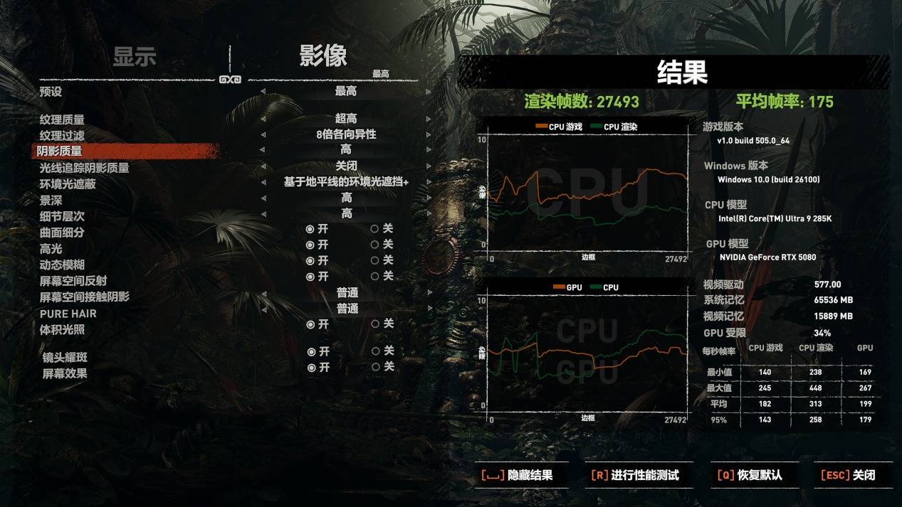古墓丽影:暗影测试结果,平均帧率175FPS