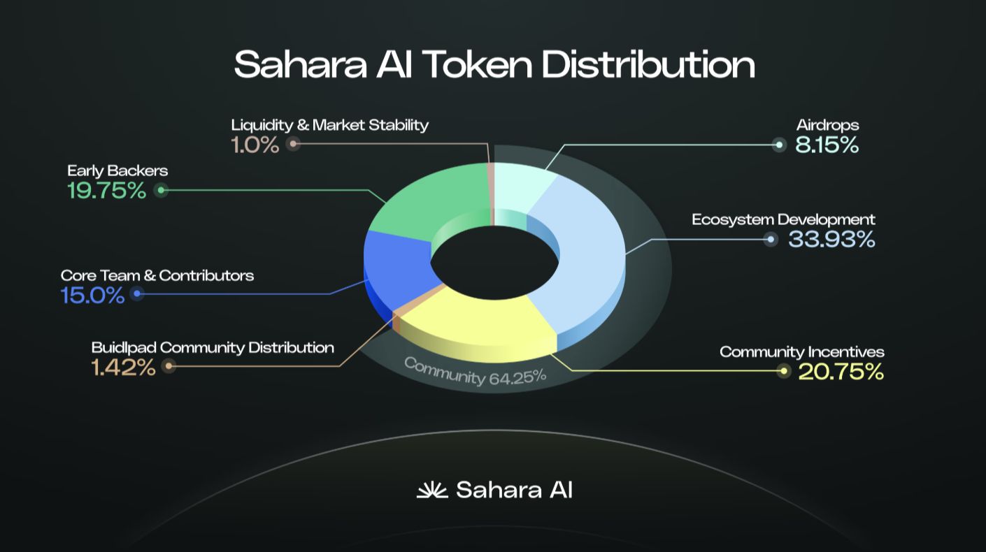 作为 Sahara AI 的原生实用与治理代币, 代币 扮演平台内各种价值流通与权利授予的关键角色。其代币经济设计如下: