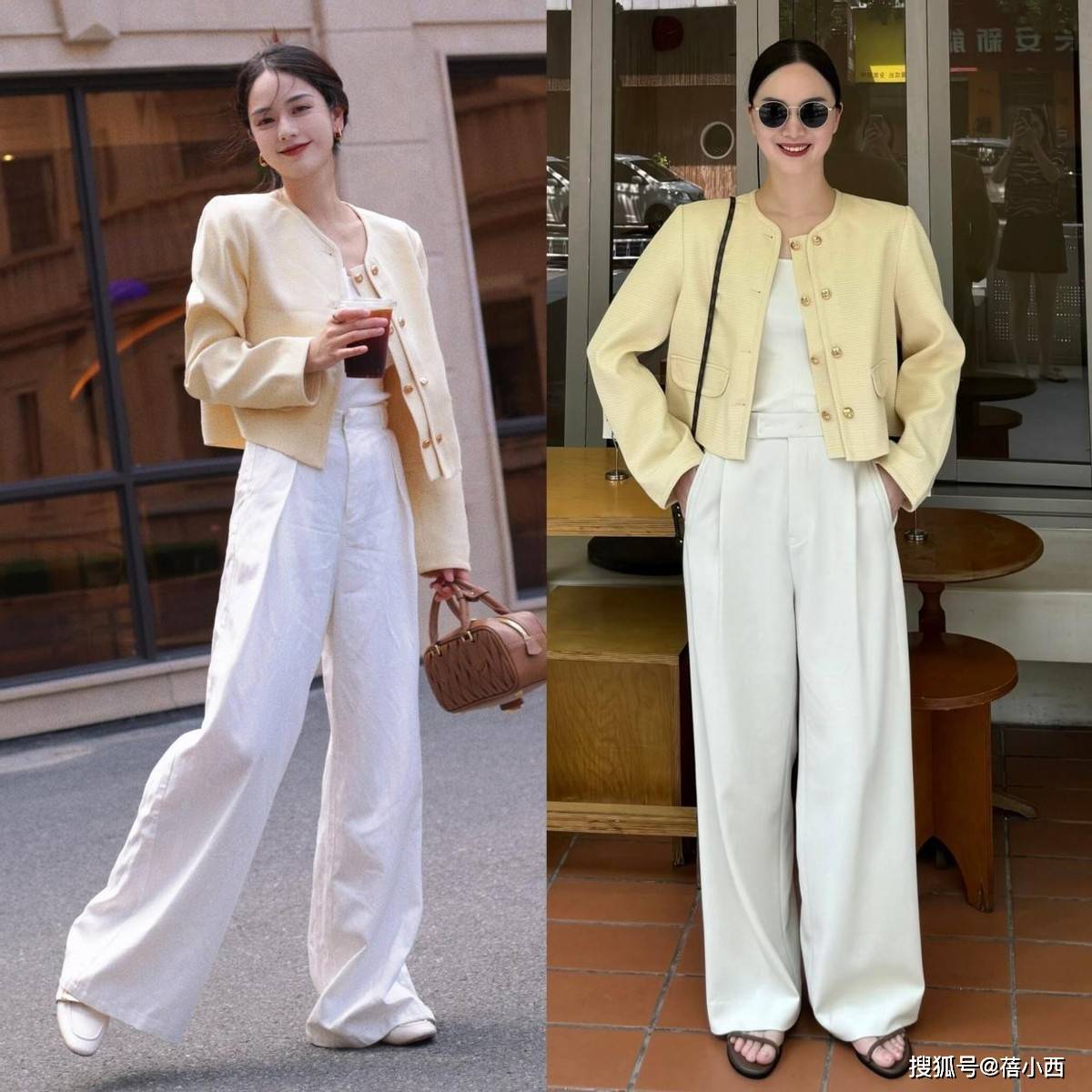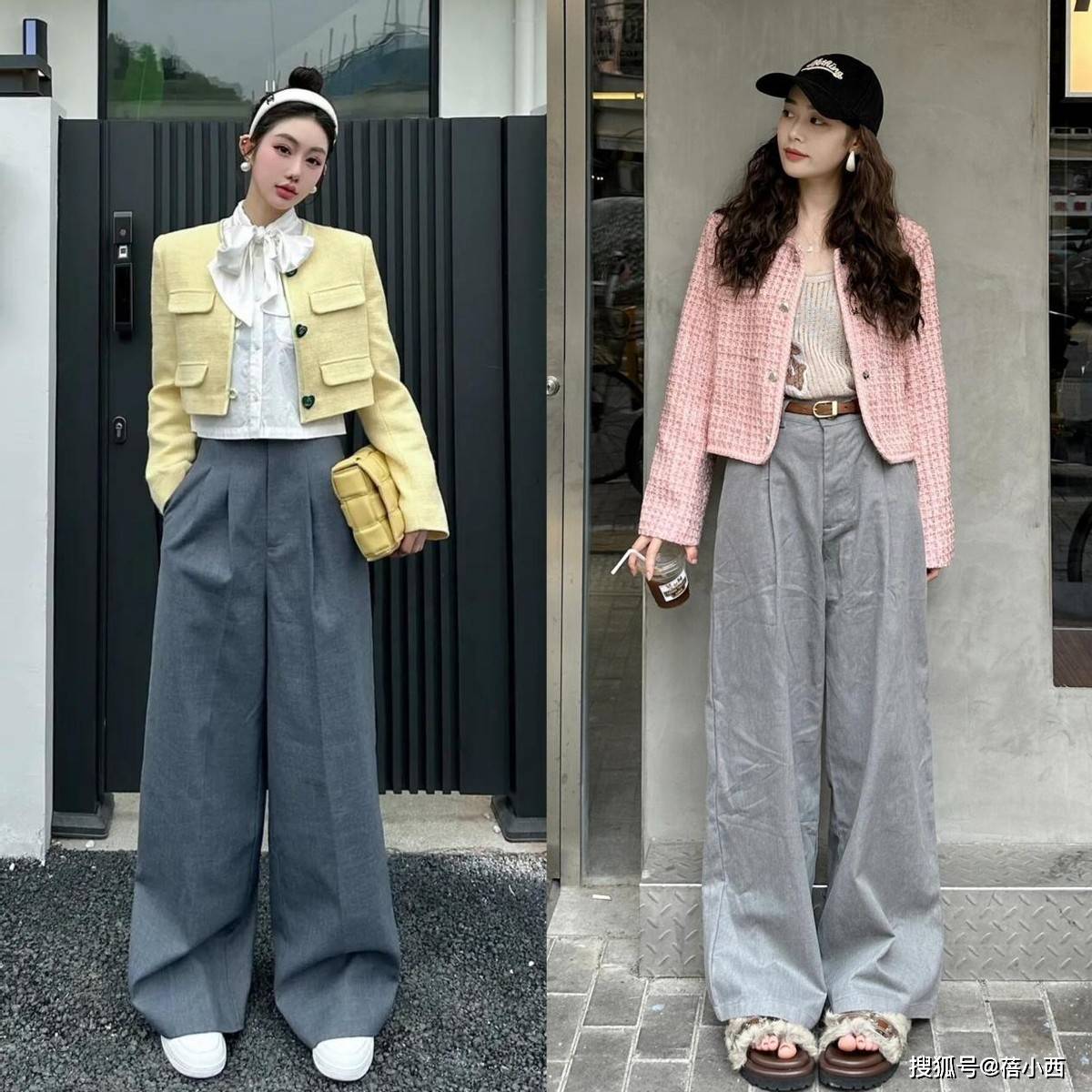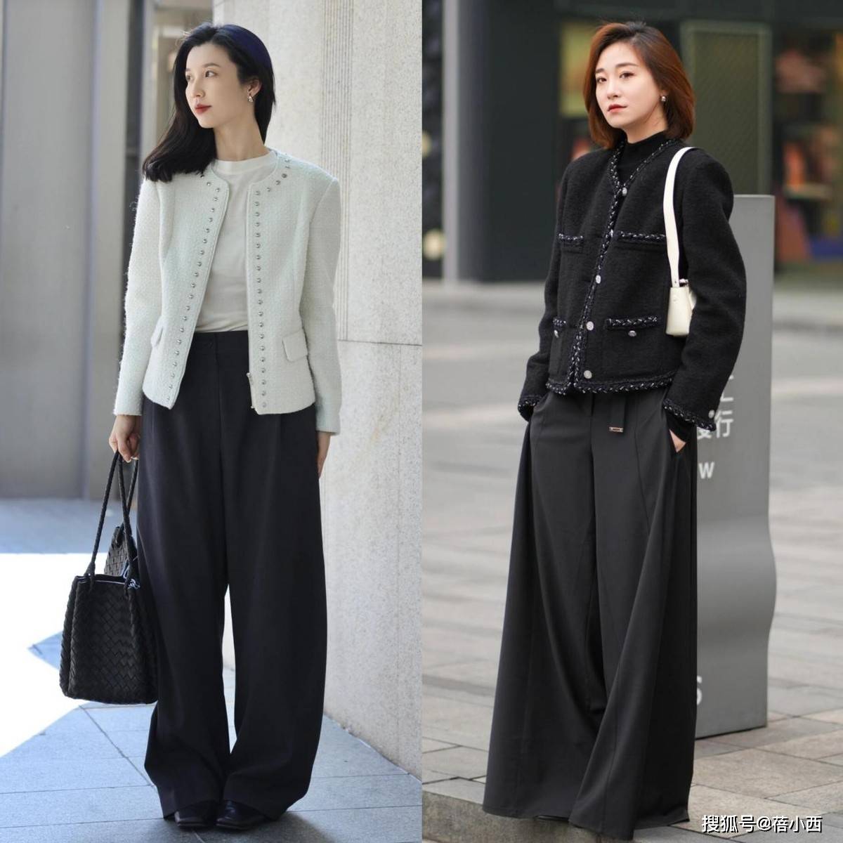 小香风作为跨越时光的经典,以粗花呢面料、精致滚边、质感金属扣为标志性元素,自带简约知性的奢华感,恰好适配40+女生对穿搭“得体又有格调”的核心需求,而阔腿裤的加入,则为这份优雅注入了随性张力。