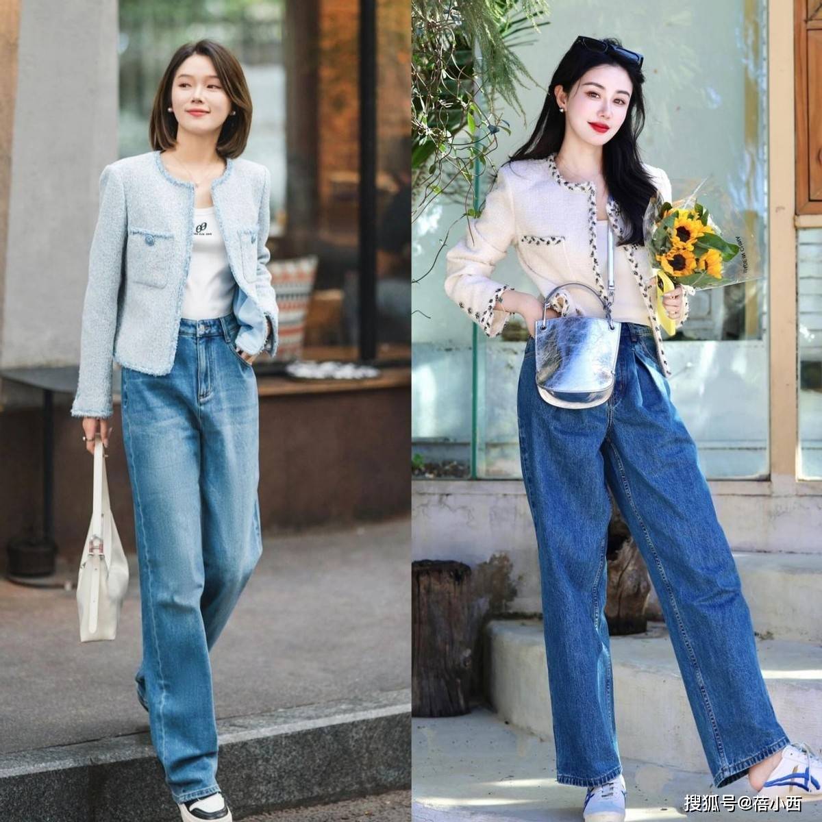 “小香风+牛仔裤”的组合则是减龄与高级的完美平衡,40+女生选择的时候,要避开复杂设计,牛仔裤优先选直筒、烟管或阔腿款,无多余装饰的经典版型更能凸显小香风的质感,长度也可以优先考虑九分的裤长,对于大部分女生都比较友好。