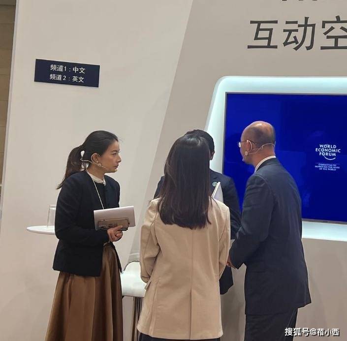 最打破常规的是下装,她没有配常规西裤,而是搭了蓝灰色印花长裙,垂坠的裙摆既保持了正式场合的端庄,又用柔美的裙装线条和针织衫以及衬衫形成“刚柔反差”,配合凉鞋更是缓解了正式穿搭的紧绷感,让造型“贵而不刻意”,完美适配活动现场的轻松氛围。