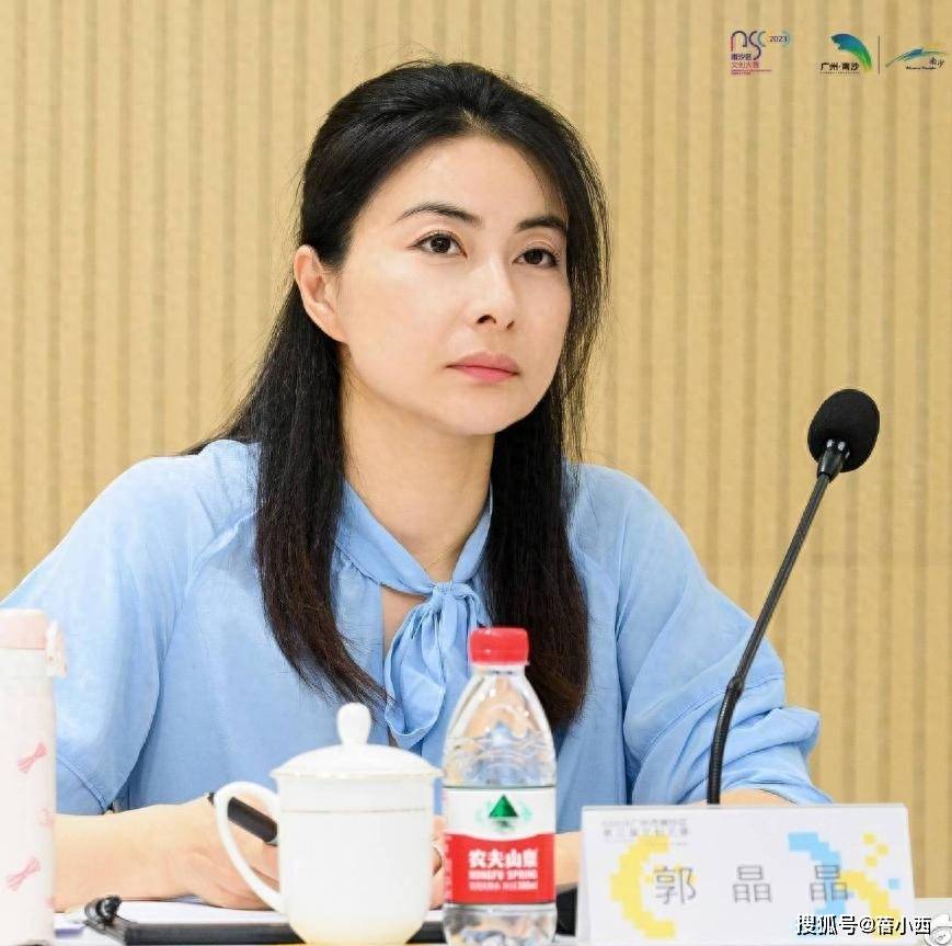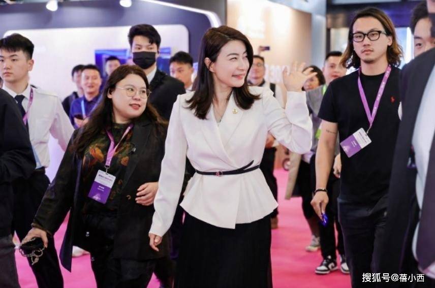 郭晶晶身上的藏蓝色针织衫,是整套搭配的核心,没有花里胡哨的设计,没有夸张的版型,整体线条偏柔和修身,内搭蓝色衬衫,既保留了活动场合需要的端庄感,又不会像传统商务西装那样显得生硬紧绷。