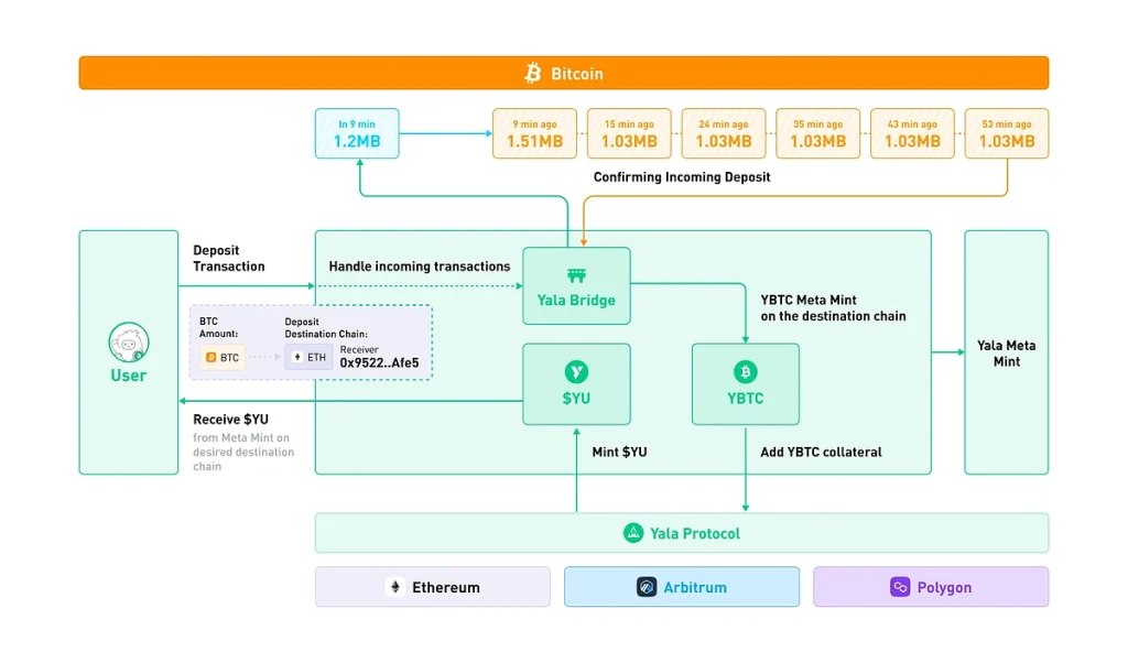 此外,Yala还利用了MetaMint,这是一种跨链协议,提供直接从比特币铸造稳定币的解决方案。
