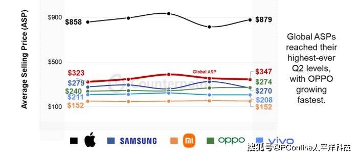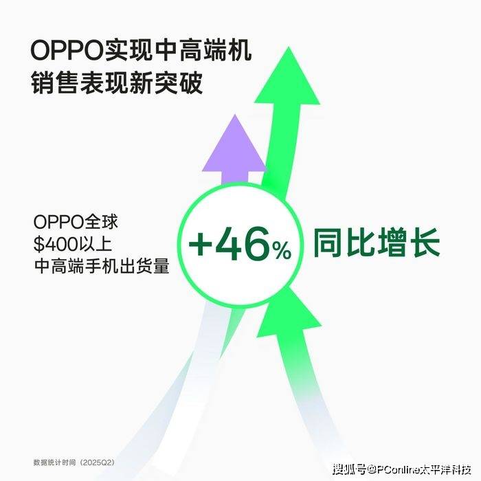 全球市场,Counterpoint Research最新数据显⽰,OPPO平均售价(ASP)跃居全球第⼆,仅次于苹果,且同期 OPPO 手机平均售价同比增长 14% ,是排名前五的品牌中增长最快的。IDC数据显示, OPPO 400美元以上中⾼端机型出货量的增速亮眼:从2024年Q2的270万台增⻓⾄2025年Q2的400万台,同⽐增⻓46.6%。