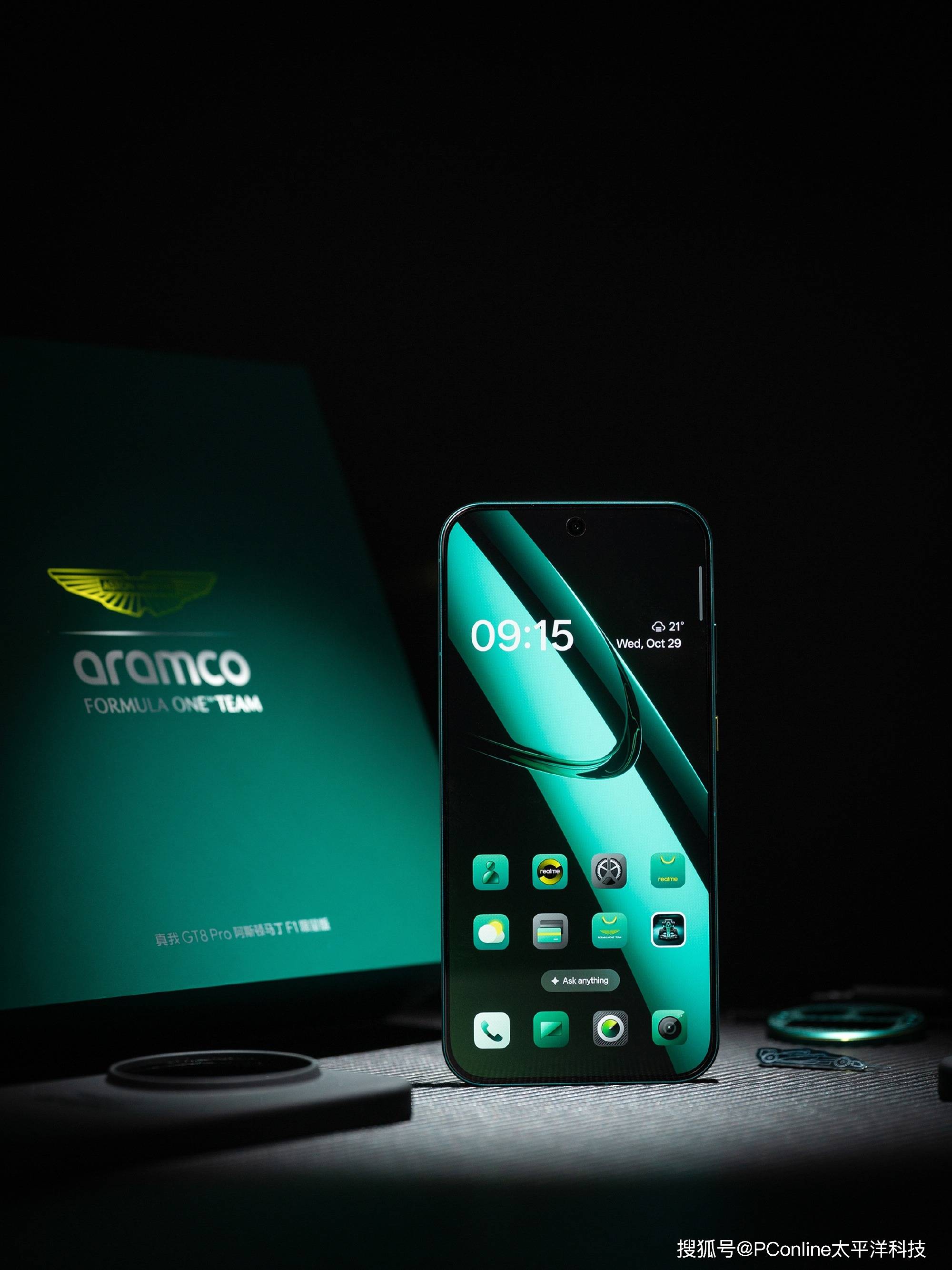 作为GT8 Pro的特殊版本,阿斯顿马丁F1限量版深度融合了赛车设计基因。机身采用车队同款"激情柠"配色,背部镶嵌标志性银翼徽标,并运用空气动力学曲线设计。其镜头模组延续了行业首创的机械拼装设计,配备碳纤维纹理装饰件。包装采用赛车同款碳纤维纹理礼盒,内含定制拼装套件和F1赛车造型卡针,打造沉浸式开箱体验。