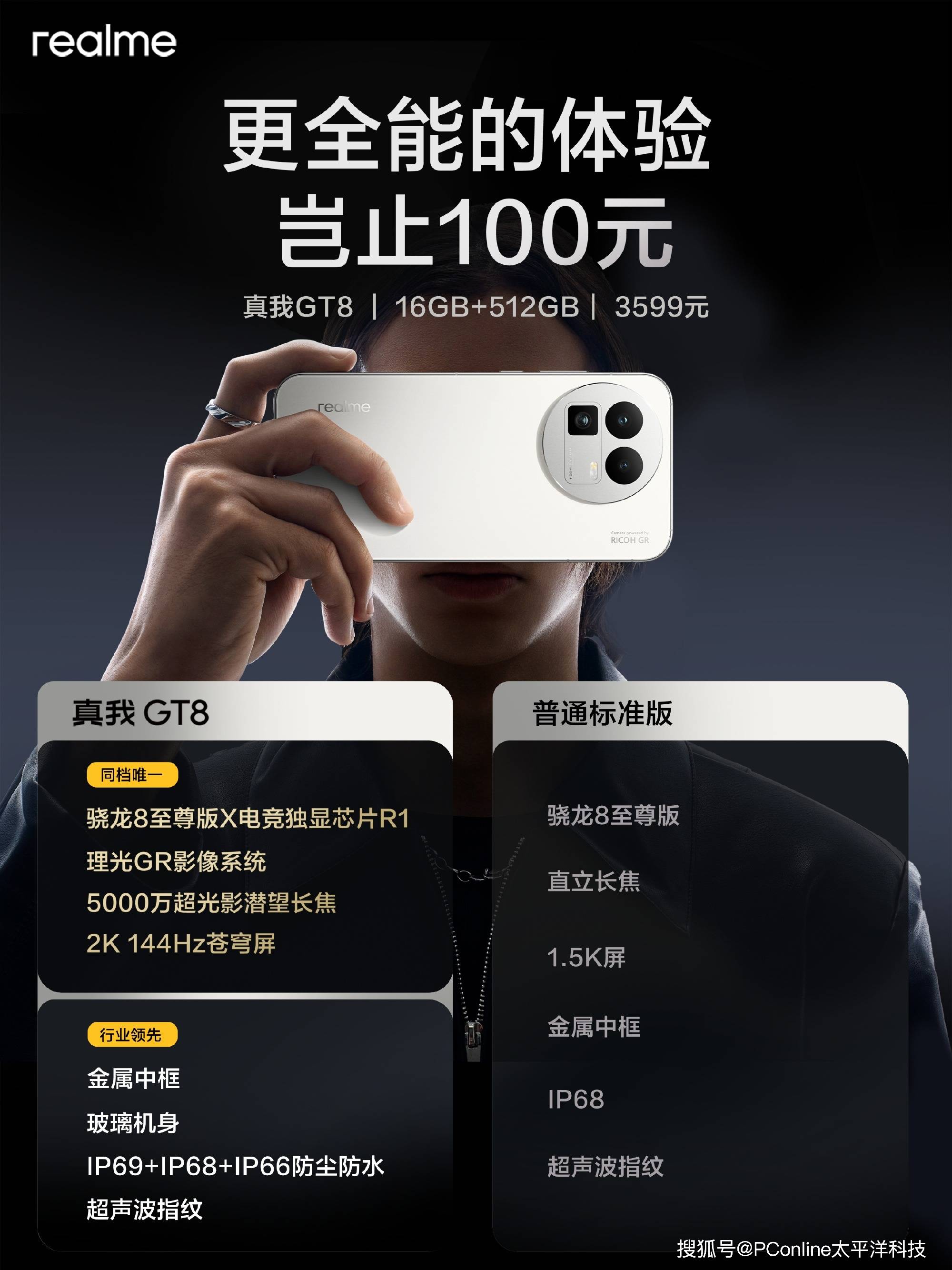 回顾10月发布的GT8系列,真我GT8 Pro以其卓越的影像能力确立了"街拍神器"的产品定位。该机搭载全链路深度定制的理光GR影像系统,配备2亿像素超光影潜望长焦,配合行业首创的机械拼装设计,为摄影爱好者提供了专业的创作工具。在核心性能方面,GT8 Pro采用旗舰双芯配置,配合2K 144Hz苍穹屏,无论是影像处理还是游戏体验都能提供极致流畅的表现。