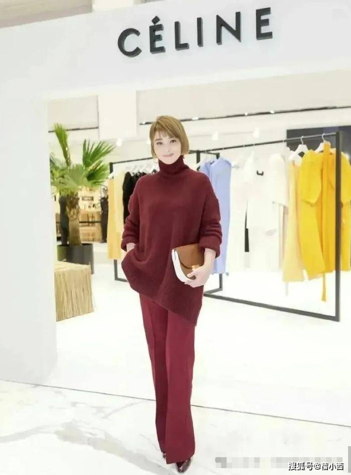 穿搭上的巧思更是让她的整体魅力翻倍,上身选择的酒红色高领毛衣,质地柔软温润,色调介于大红与暗红之间,既有提亮气色的活力感,又不失成熟女性的端庄内敛。小高领设计巧妙修饰颈部线条,兼顾了冬日的保暖性与造型的精致感,简约大方的款式不挑身材,尽显低调优雅的气质。