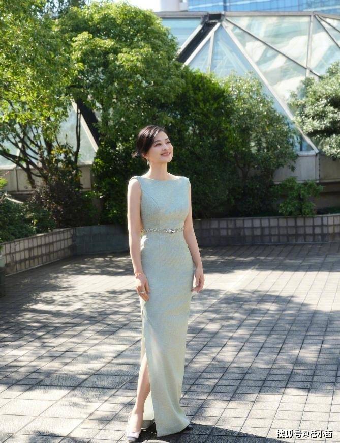 这一身薄荷绿连衣裙也很温柔,裙身不是晃眼的亮绿,也不是老气的深绿,而是饱和度低且亮度适中的薄荷绿,衬得肤色白皙,气色很好,直接减龄十岁。