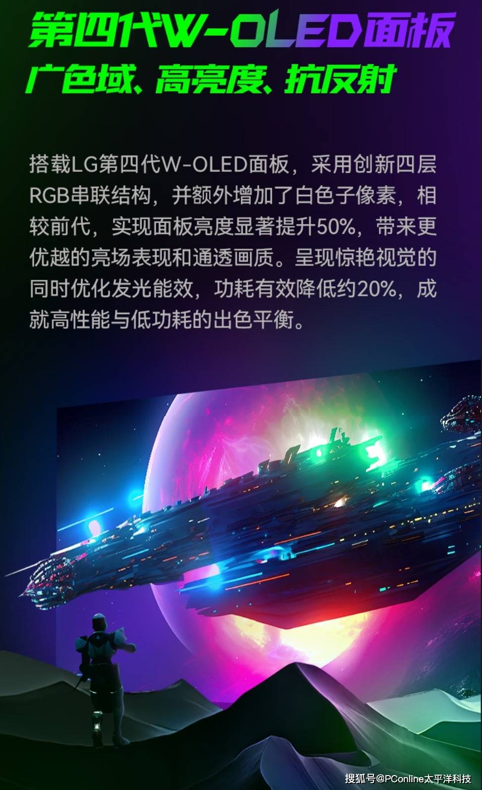 如果说280Hz是它的“速度”,那么LG原厂的这块第四代WOLED面板 就是它无可匹敌的“灵魂”。与传统LCD需要背光模组不同,OLED技术实现了像素级的自发光与独立控光。这带来的最直观好处就是“无限对比度”。当显示黑色时,像素点可以直接“关闭”,呈现出近乎完美的“真·黑”,彻底杜绝了LCD屏常见的“漏光”和“灰蒙蒙”的观感。
